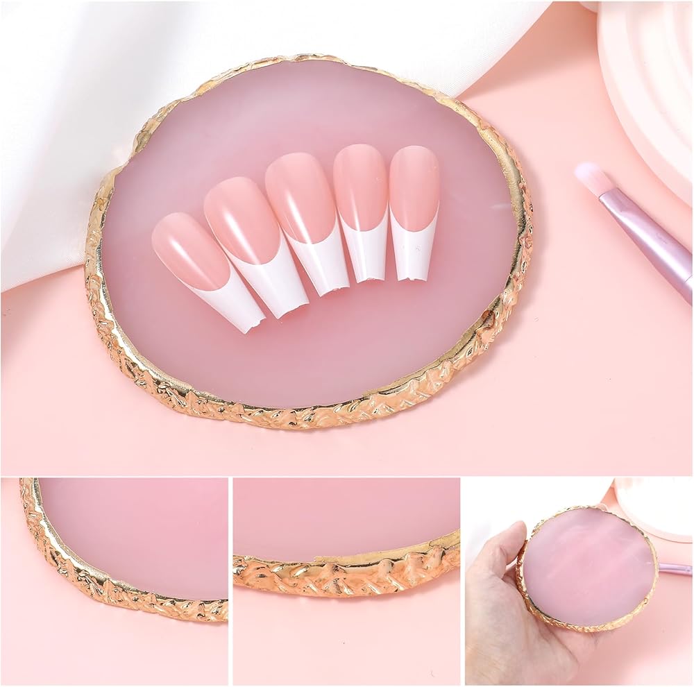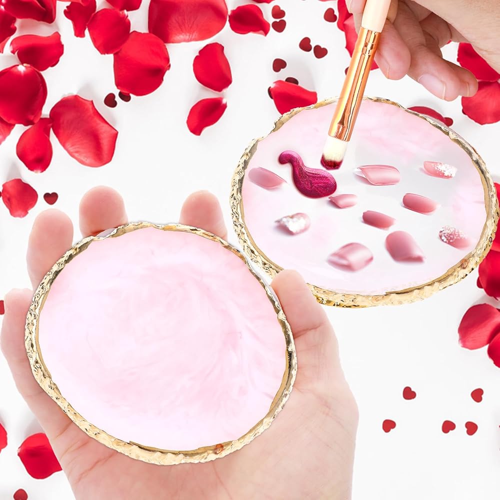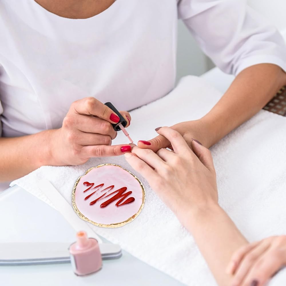 Natural Material: These nail art tray are made of quality resin material, environmentally friendly and durable, easy to clean, just wipe it gently, the edges are sealed with smooth gold edges, which can prevent scratch and keep your hands when you use it.