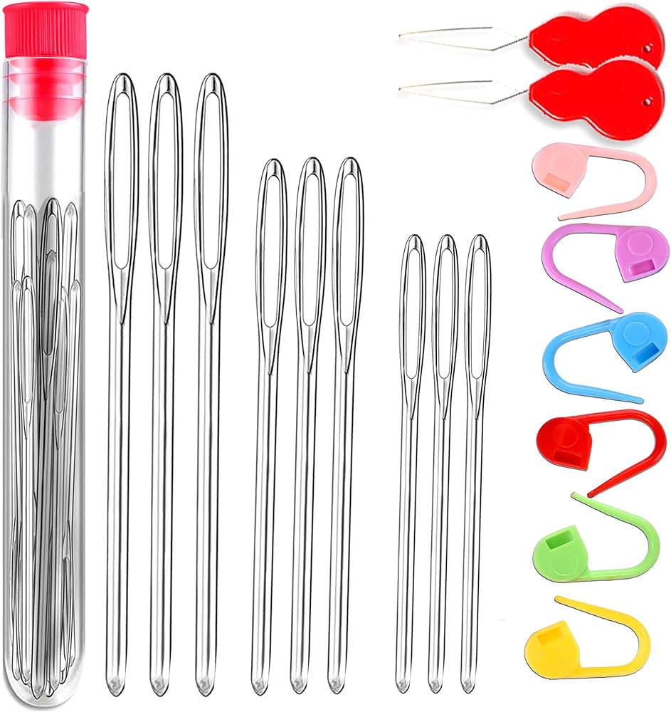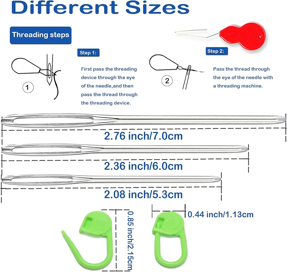 2. أحجام مختلفة: تشمل إبر خياطة العين الكبيرة 3 أحجام ، 5.3 سم ، 6 سم ، 7 سم ، إجمالي 9 PCs ، إبر خياطة بلاستيكية 4 أجزاء ، غرزة قفل 12 ٪ ، وأحجام مثالية من إبر الحياك أنهي مشروعك.