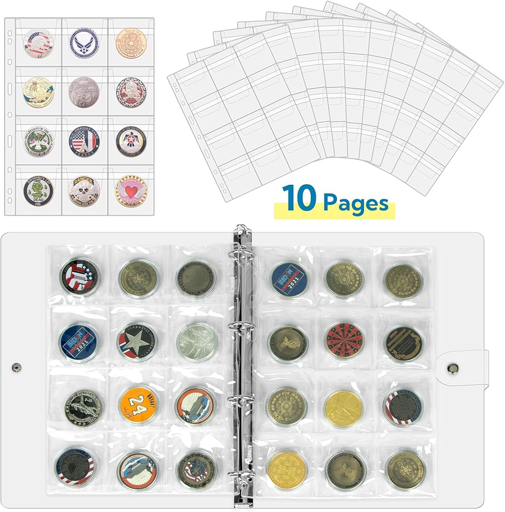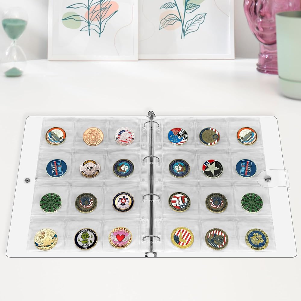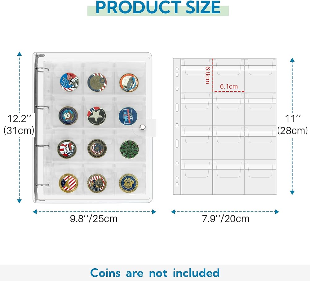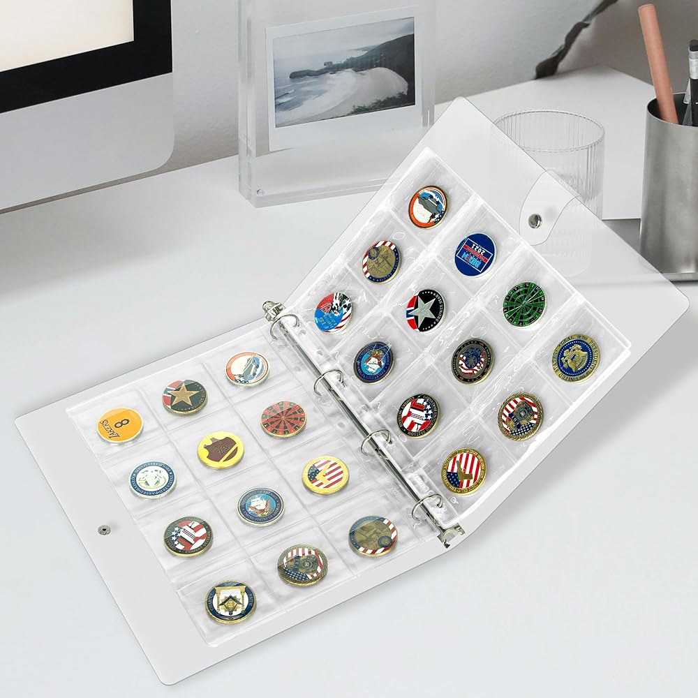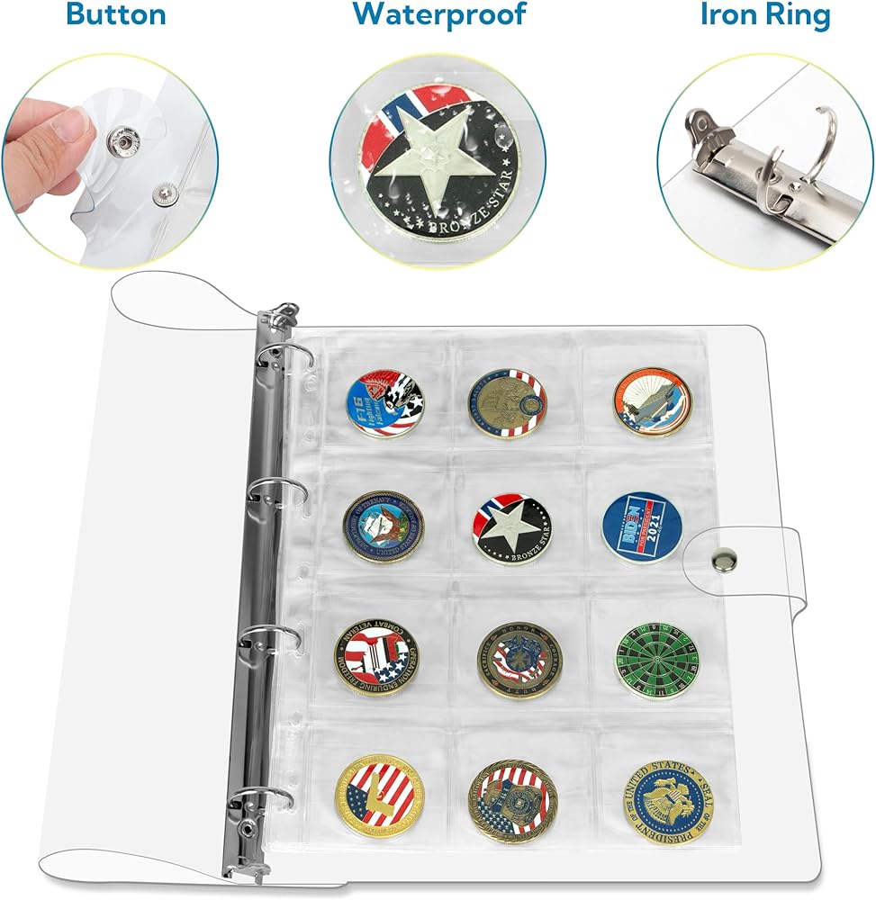 كتاب تخزين العملة المعدنية: يوفر كتاب عرض Clear A4 Challenge Coin جيوبًا مخصصة ، و 10 صفحات من صفحات الجيب للعملة المعدنية لتخزين مجموعة عملة التحدي العسكرية وعرضها بدقة.