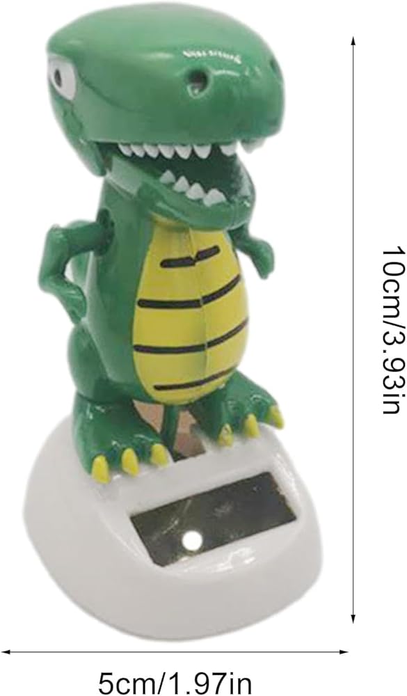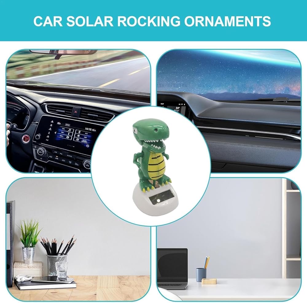 Bring a touch of whimsy and eco-friendly fun to your desk or dashboard with this Green Solar Powered Dancing Dinosaur! This delightful decoration gift is a swinging dancer toy that requires no batteries, harnessing the power of the sun to keep it grooving all day long. Perfect for home decor or as a unique birthday gift, this solar-powered kit is a charming addition to any space.Crafted from durable materials, this solar-powered toy is a sustainable and low-maintenance way to add a touch of playful energy to your surroundings. Whether you're looking for a fun desk companion or a quirky dashboard decoration, this Green Solar Powered Dancing Dinosaur is sure to delight and amuse.