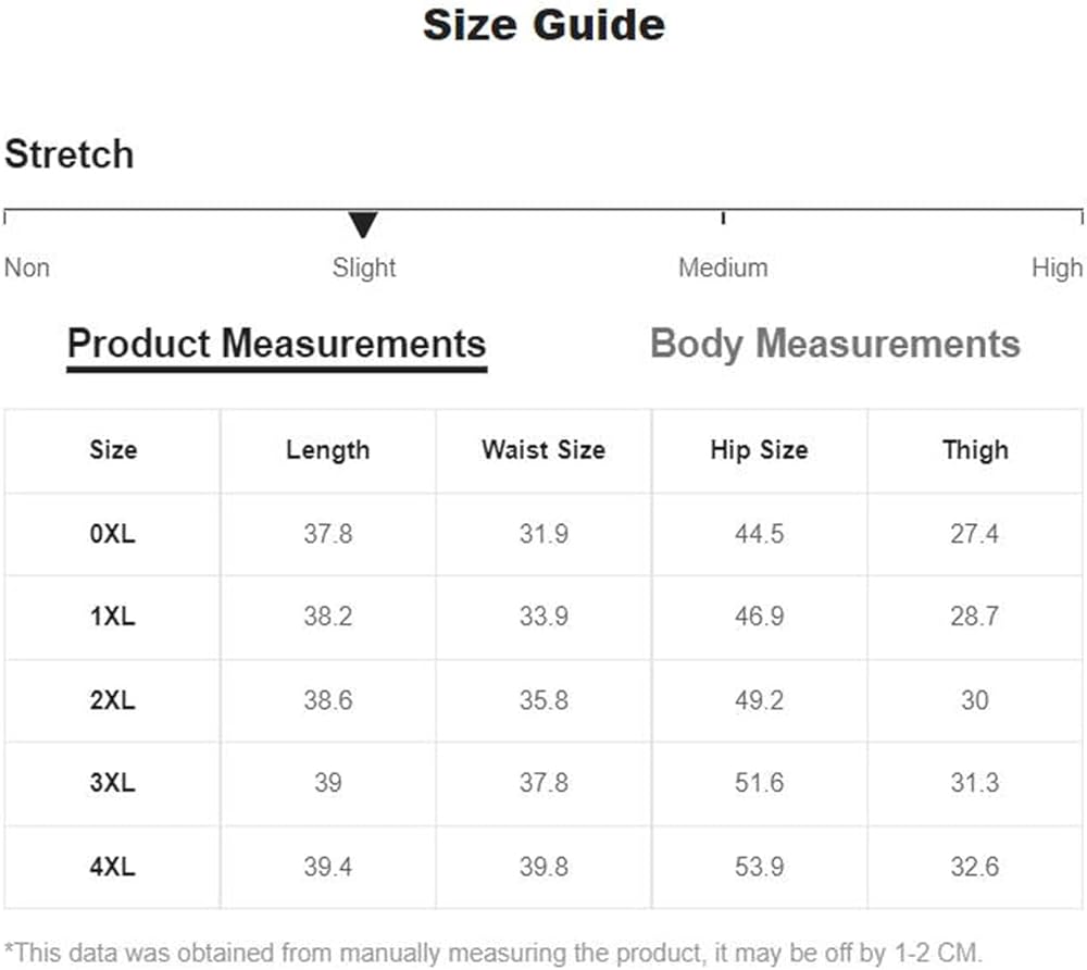 4X-Large Plus: Length: 39.4", Waist Size: 39.8", Hip Size: 53.9", Thigh: 32.6"
