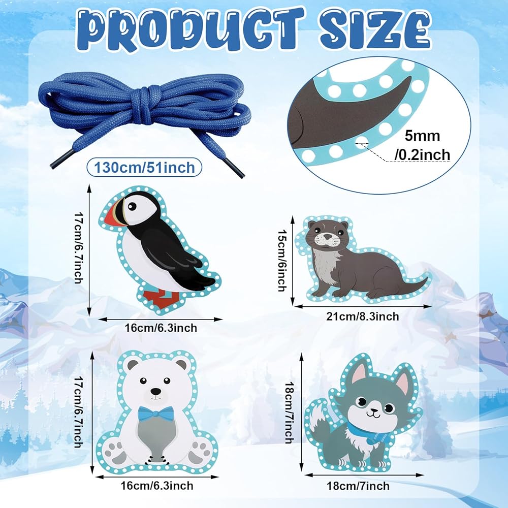 Ideal for gifting, these lacing cards are a hit at birthdays and holidays. The adorable Polar animal designs double up as cute decorations, adding an extra charm to a room or learning space. Apart from the laughter and joy they bring, they also inspire people's love for animals and the environment.