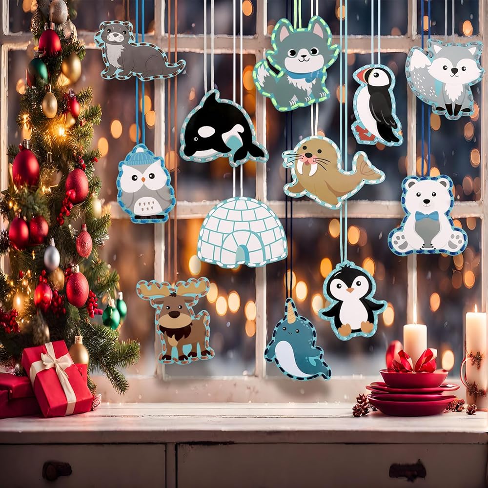 Sonwyoung 12 PCS الحيوانات القطبية البطاقات البطاقات Toy Toy Mets Kits Cardboard بطاقات الخياطة التي تضع ألعاب ألعاب اللوحة لخيال الخيال لتطوير الخيال