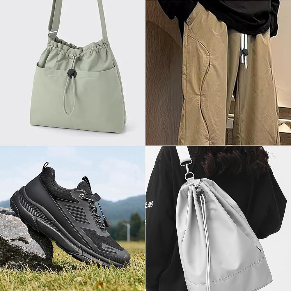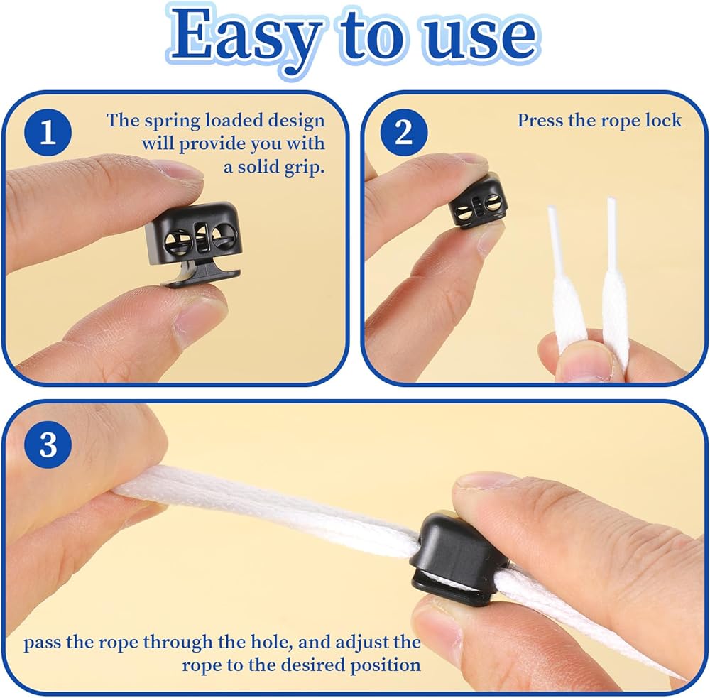 【Easy to Use】This drawstring clip is easy to install. Simply press the button to release the locking mechanism, pass the rope through the hole, and then release the button to secure it firmly.