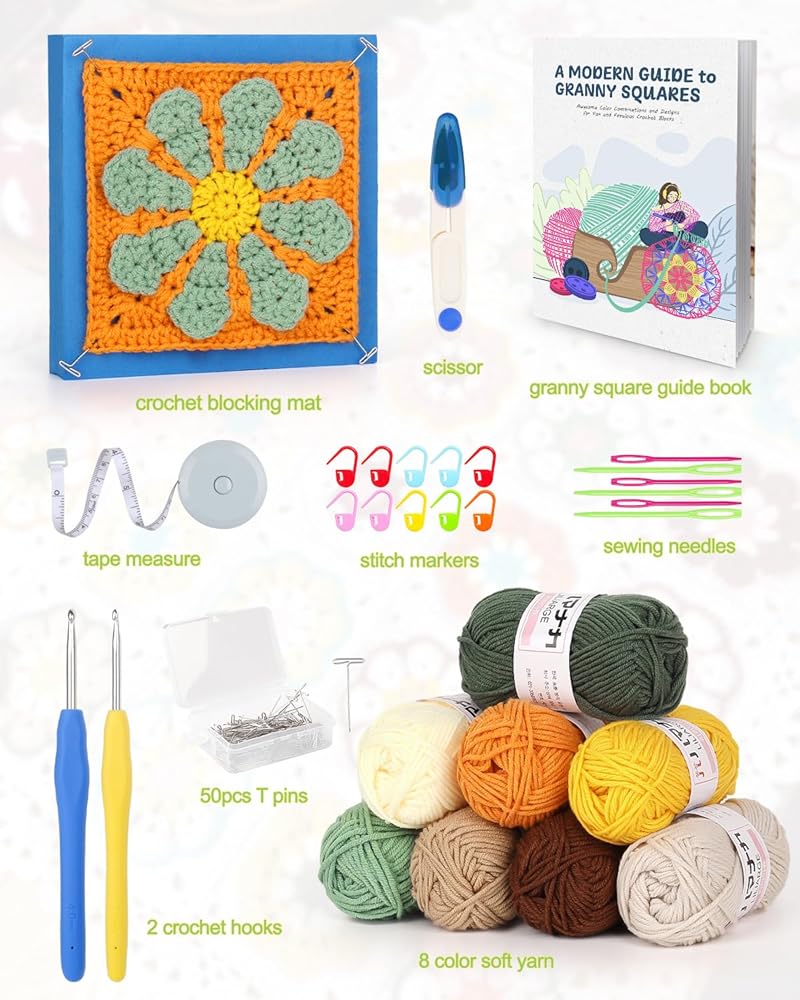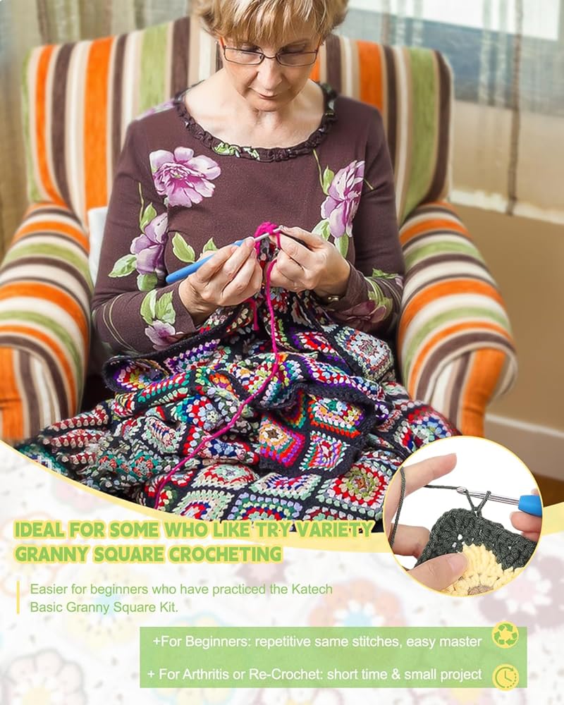 If you are arthritis, granny squares crochet kits are a great choice for you, it take you less time to complete, reducing the stress on your hands will make you fall in love with crochet all over again!