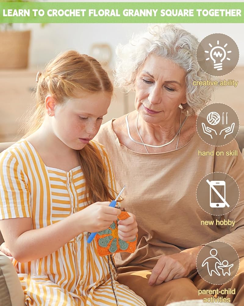 • Crochet with Families & Learn New Skills: Crocheting is a craft activity that reduces stress and relaxes the mind and body. Granny square is a small project, same repeated stitches are easier to memorize and beginners easy get a sense of accomplishment. With crochet kit for beginners, not only relaxes the stress from working life, but learn a new skill at the same time. The crochet kits comes with 2 crochet hooks, so you can crochet with your family and friends to increase your bonding