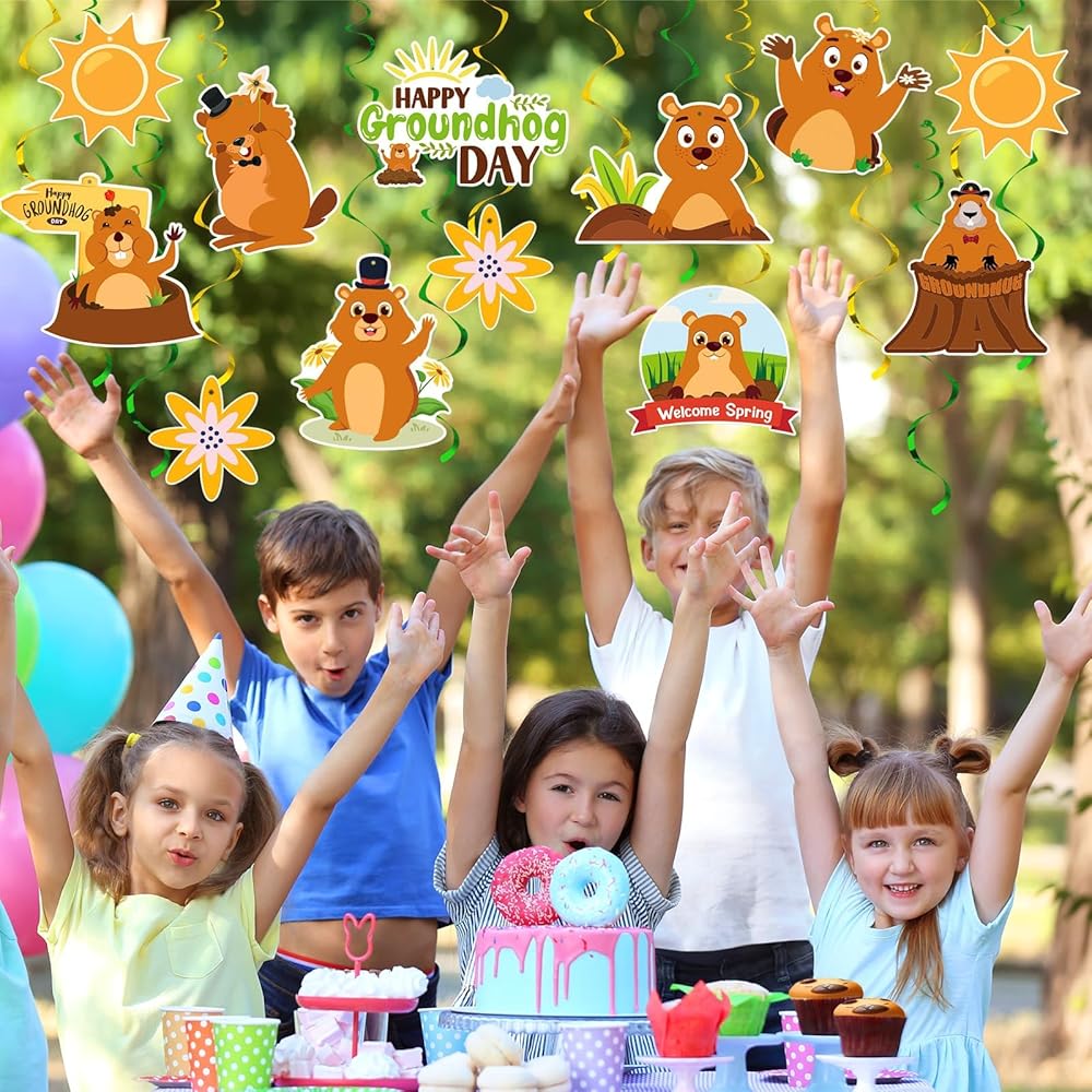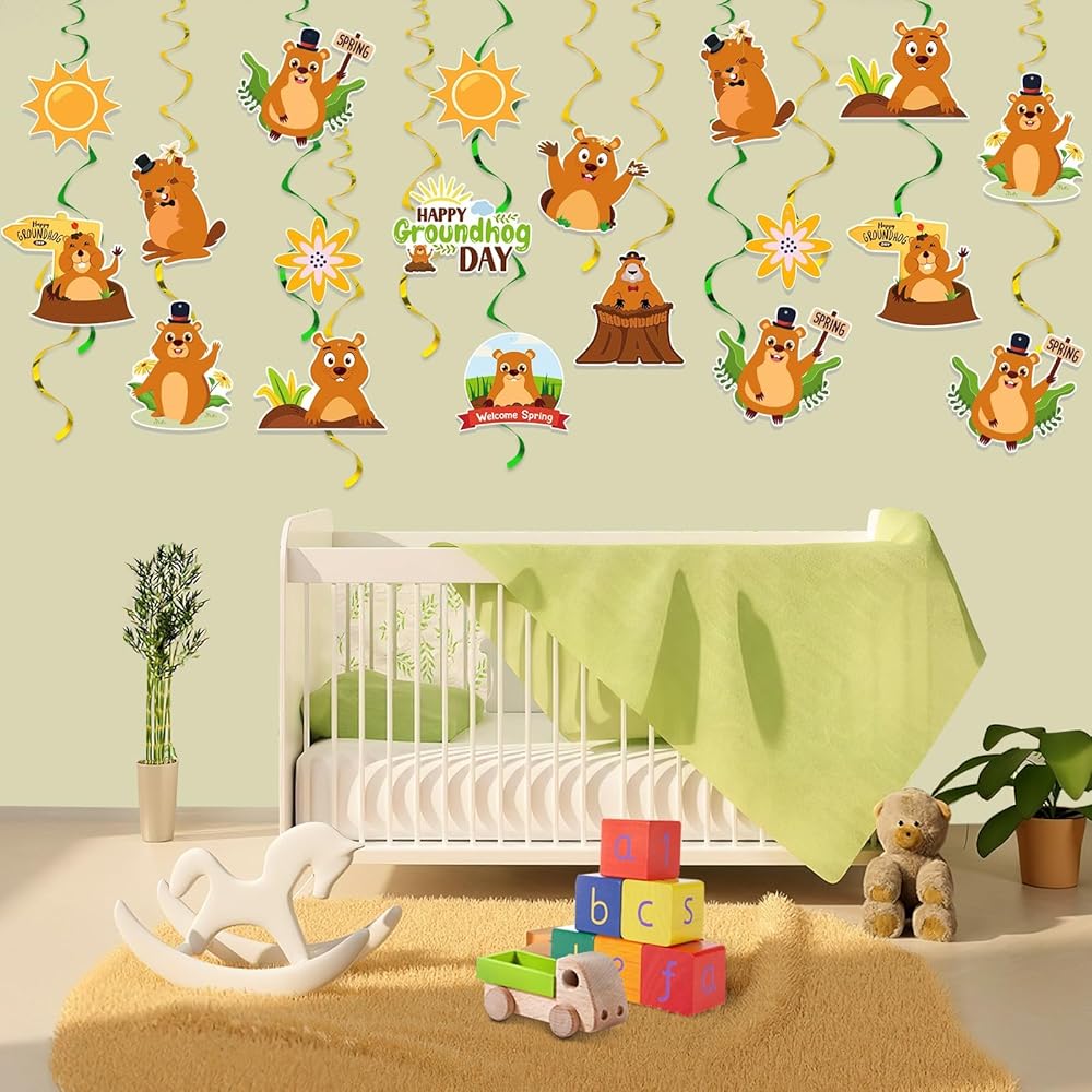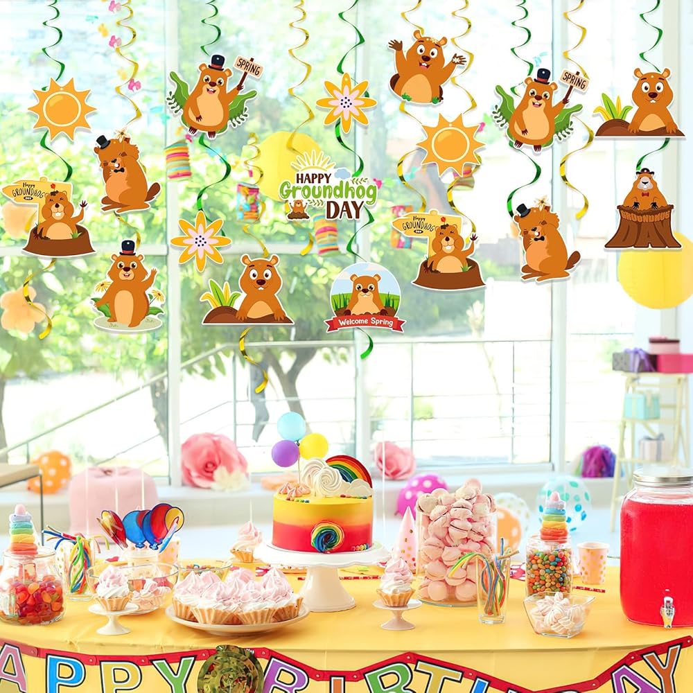 كمية كافية: تشمل مجموعة ديكور يوم جرذ الأرض 22 قطعة معلقة و 22 قطعة معلقة دوامات ، وهو ما يكفي لتلبية احتياجاتك من الزخرفة وإضافة جو مهرجان غني إلى مناسبة