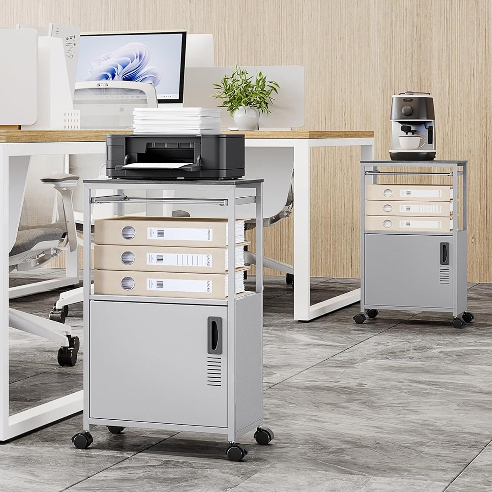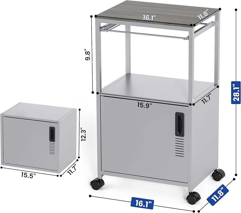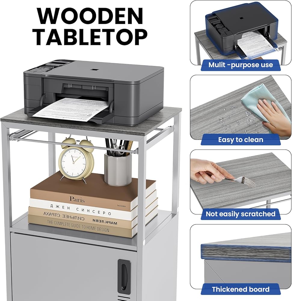 تخزين واسع: يضم خزانة منخفضة فسيحة مع إغلاق الباب المغناطيسي ، يوفر موقف الطابعة مع التخزين مساحة مريحة للمستلزمات المكتبية أو المعدات أو حتى ورق الطابعة الإضافي.