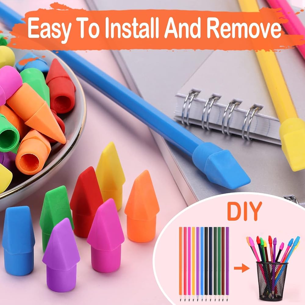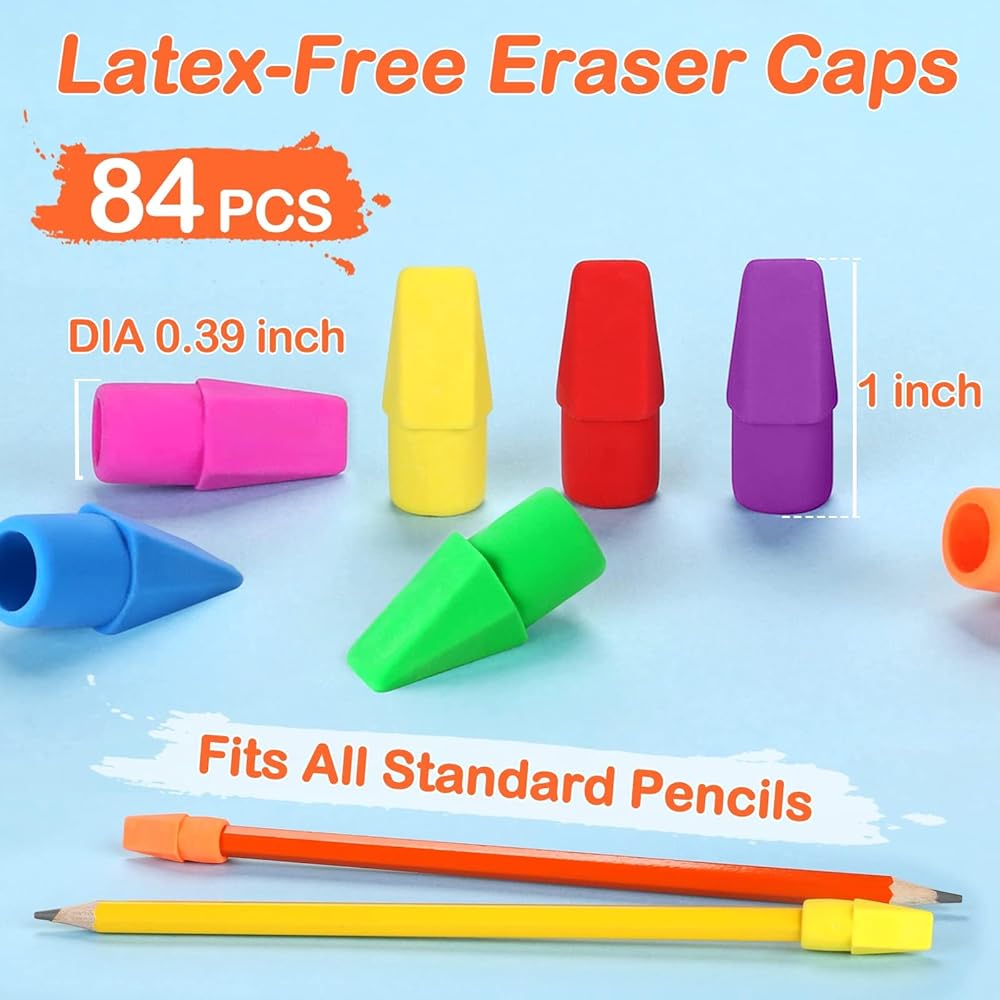 من السهل تثبيت وإزالة قبعات ممحاة خالية من اللاتكس. البيئة والمواد غير السامة ، مثالية للطلاب في المدارس أو العاملين في المكاتب. من السهل على الأطفال الحصول على قلم رصاص وإيقافها عندما يغيرون عقولهم ويريدون لونًا مختلفًا.