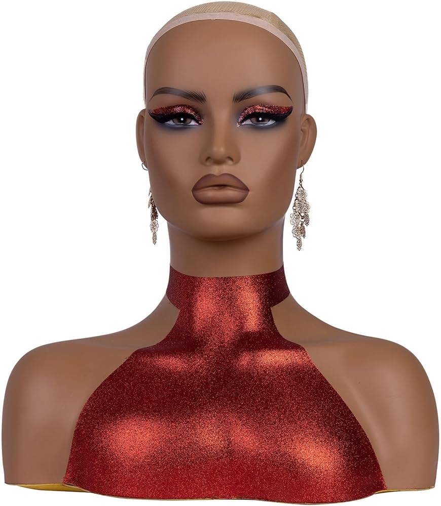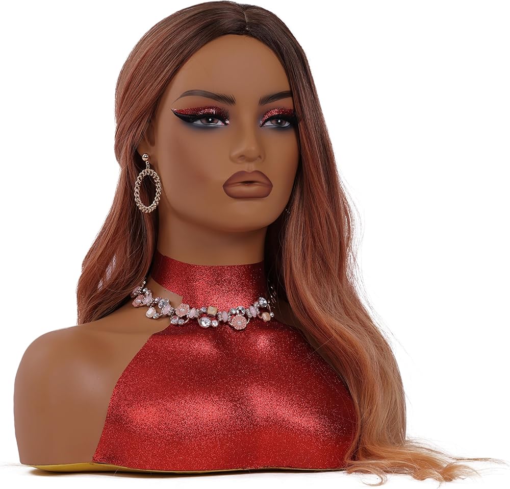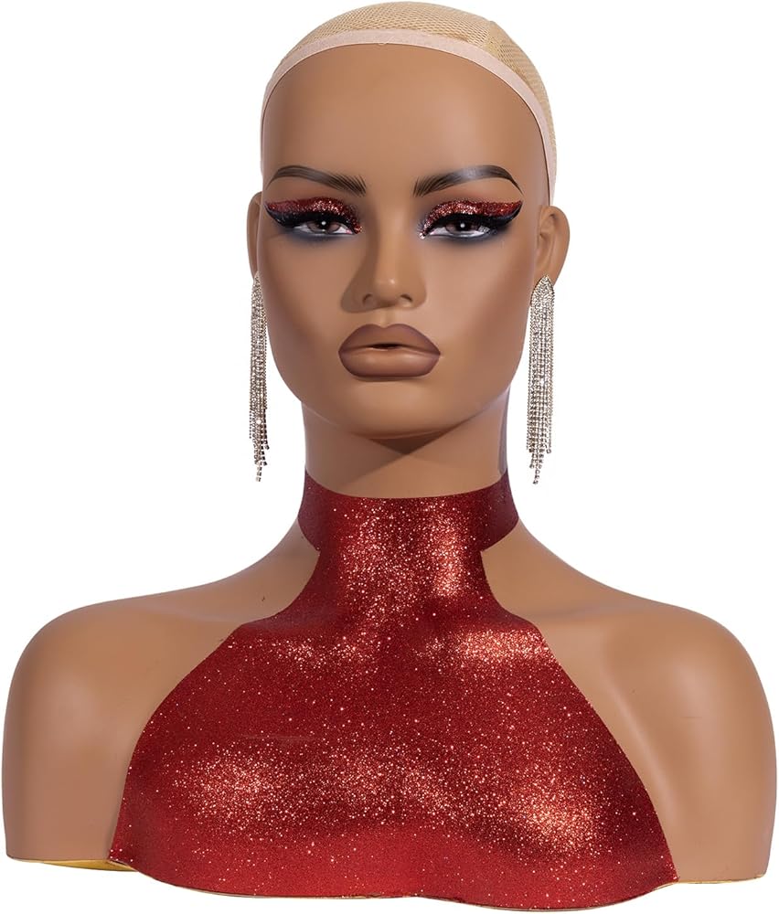• This professional mannequin head with shoulders is perfect to display Wigs, Earrings, Necklaces, Sunglasses, Hats and Scarfs