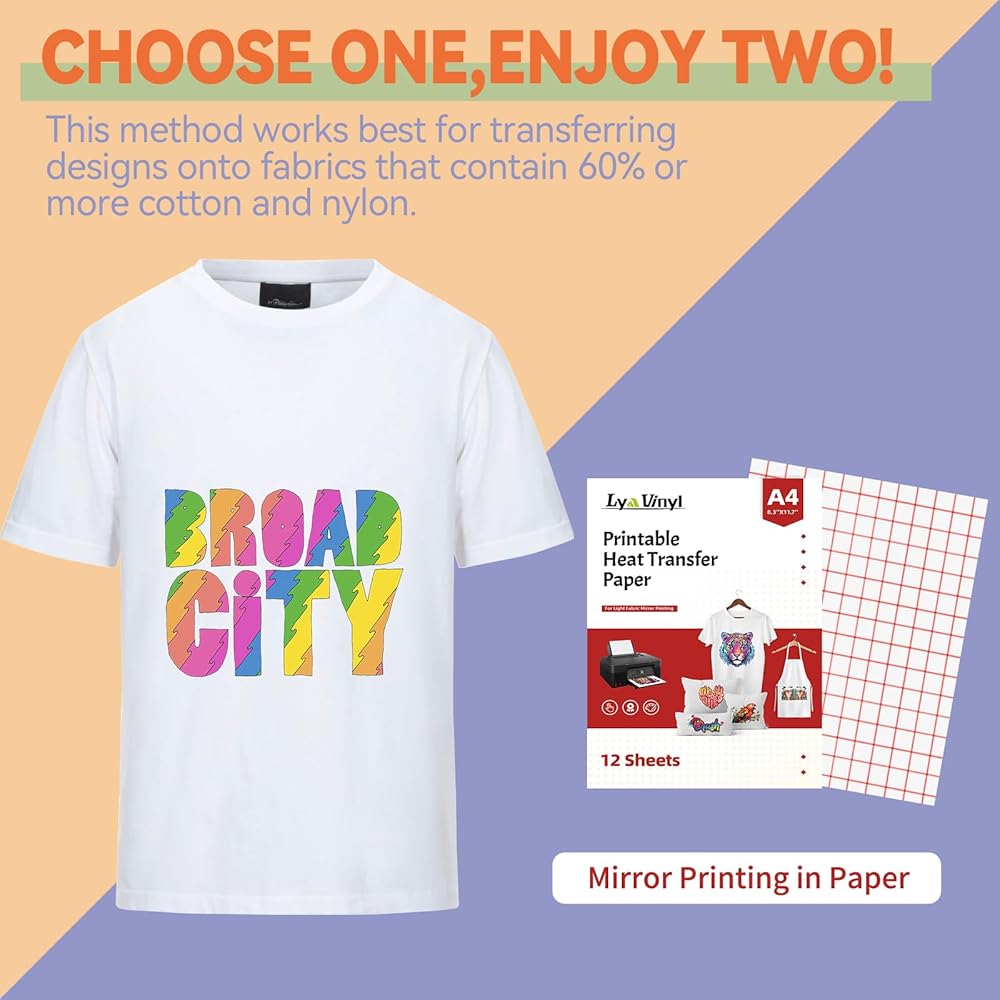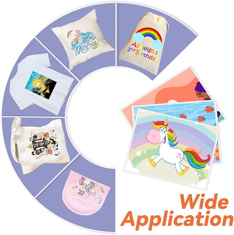 「ورقة نقل الحرارة للضوء」- 12 ورقة ورقة نقل الحرارة للمنسوجات ذات اللون الفاتح. أكمل أولاً الطباعة على طابعة نفث الصبغة (طباعة المرآة) - ضع Teflon على اللوحة ومرآة الختم الساخن التركيز على الملابس ذات اللون الفاتح - تمزيق ورقة نقل الحرارة واستكمال العمل.