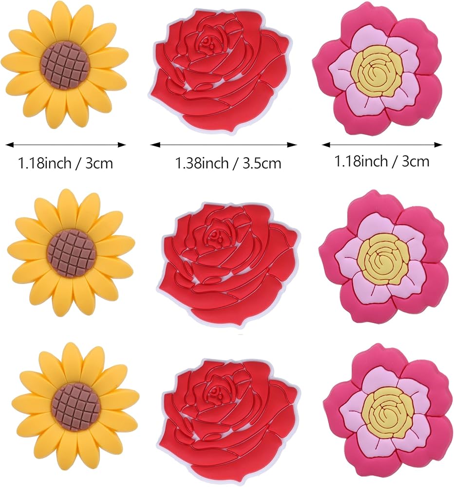 Perfect Size Range: Each flower charm measures between approximately 1.18 to 1.38 inches (3 to 3.5 cm) in diameter. These sizes are ideal for making a visual statement without overwhelming the bag's look. Easily insert and rearrange the charms for a fresh look whenever you like.