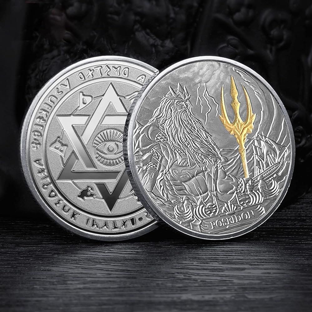 اليونانية القديمة إله البحر بوسيدون مع عملة تحدي ترايدنت المقدسة