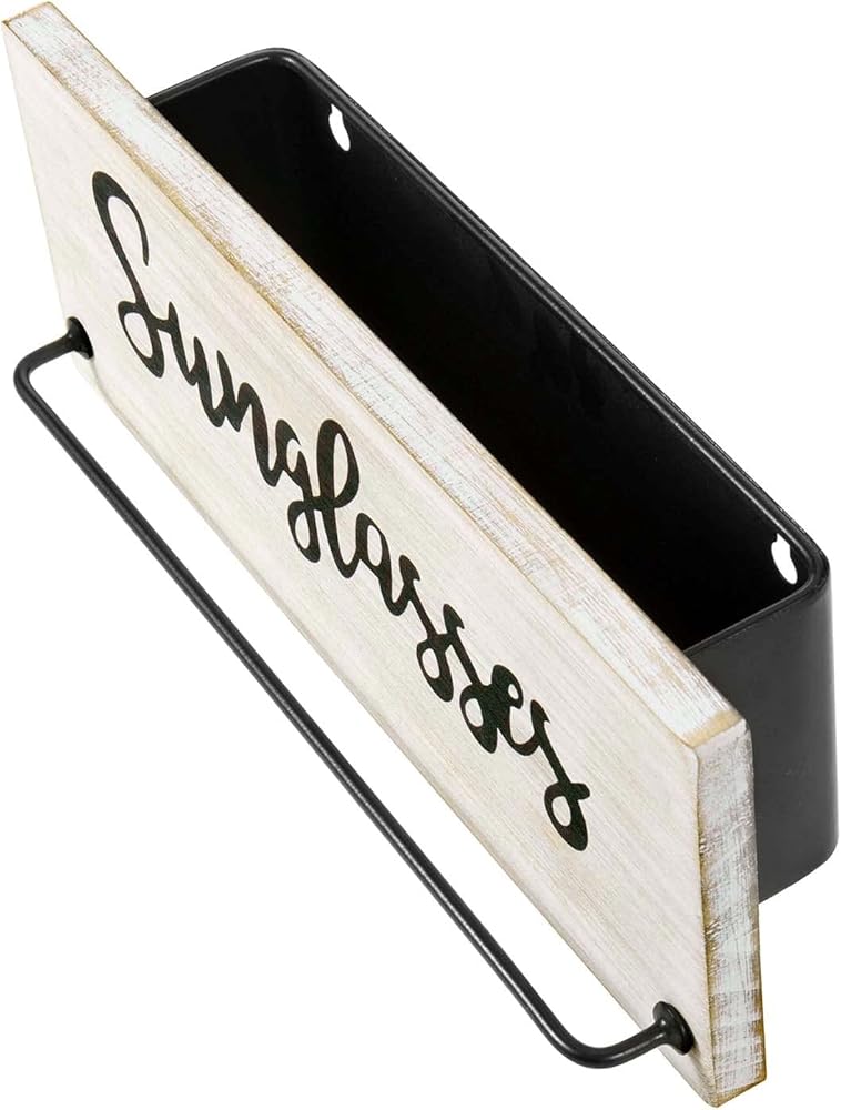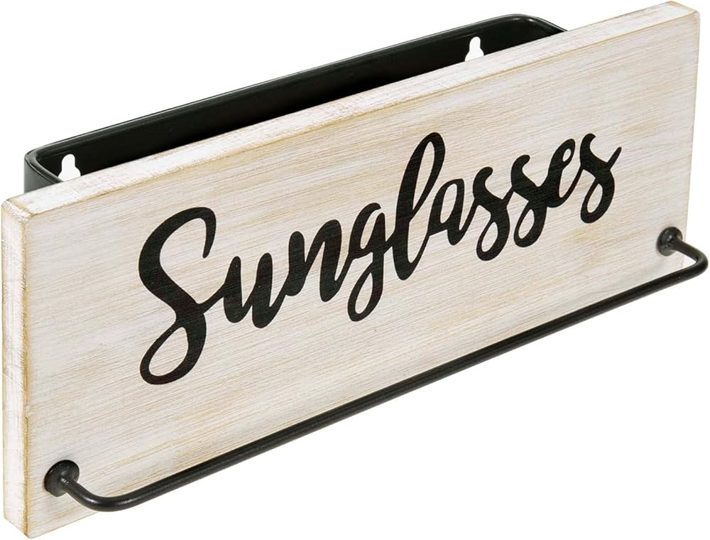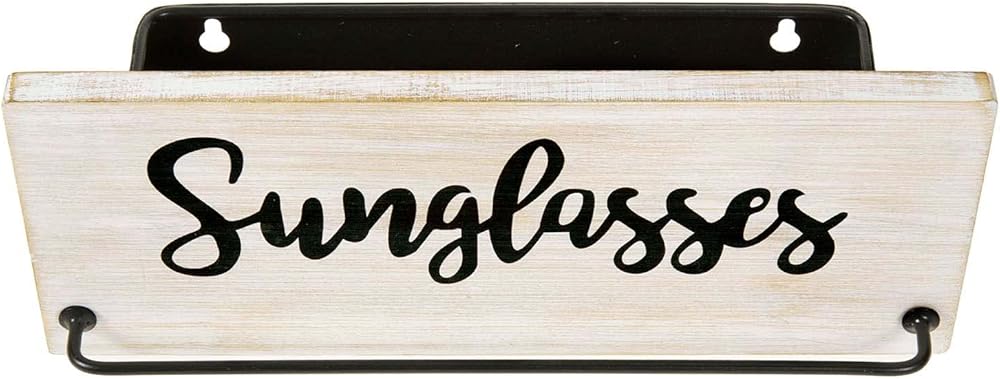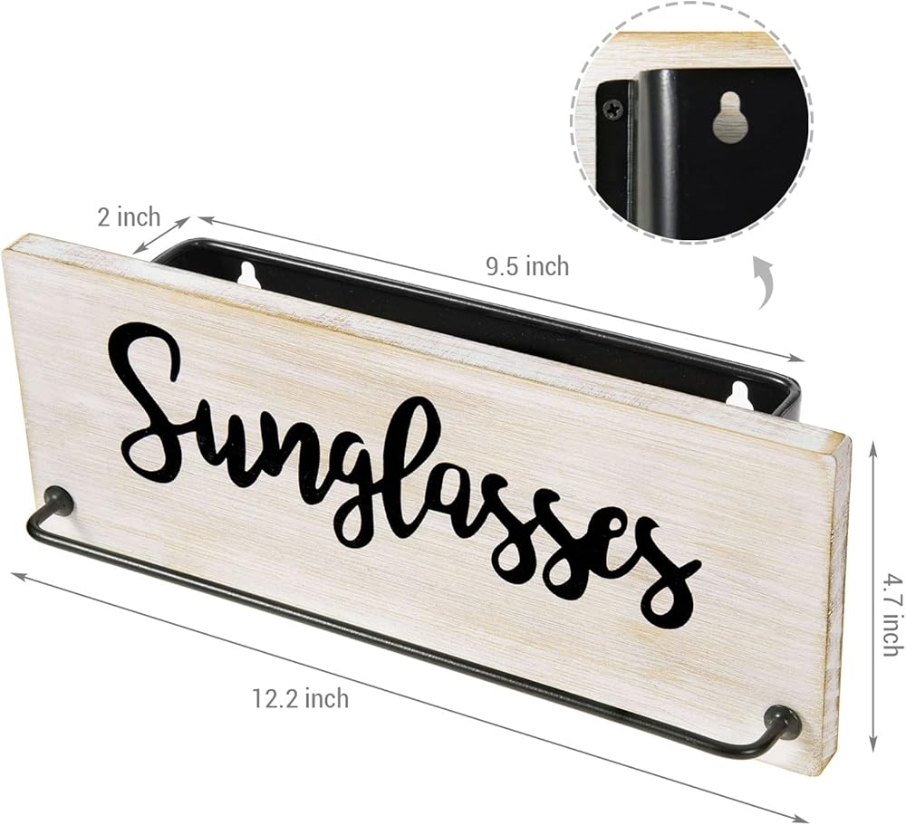 تم تصميم لوحة مستطيلة 4.5 × 12 بوصة من الخشب الصلب الأبيض مع زوايا ناعمة ورسائل نصية سوداء "نظارة شمسية"