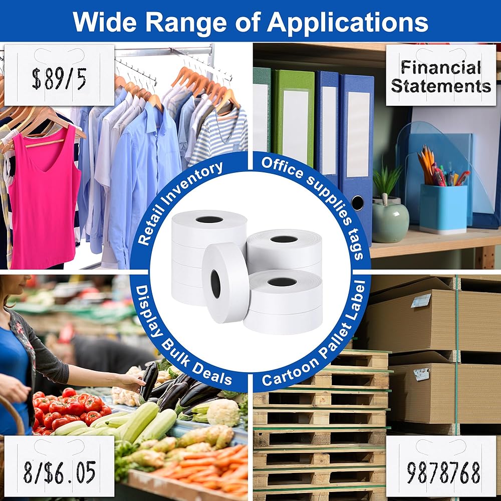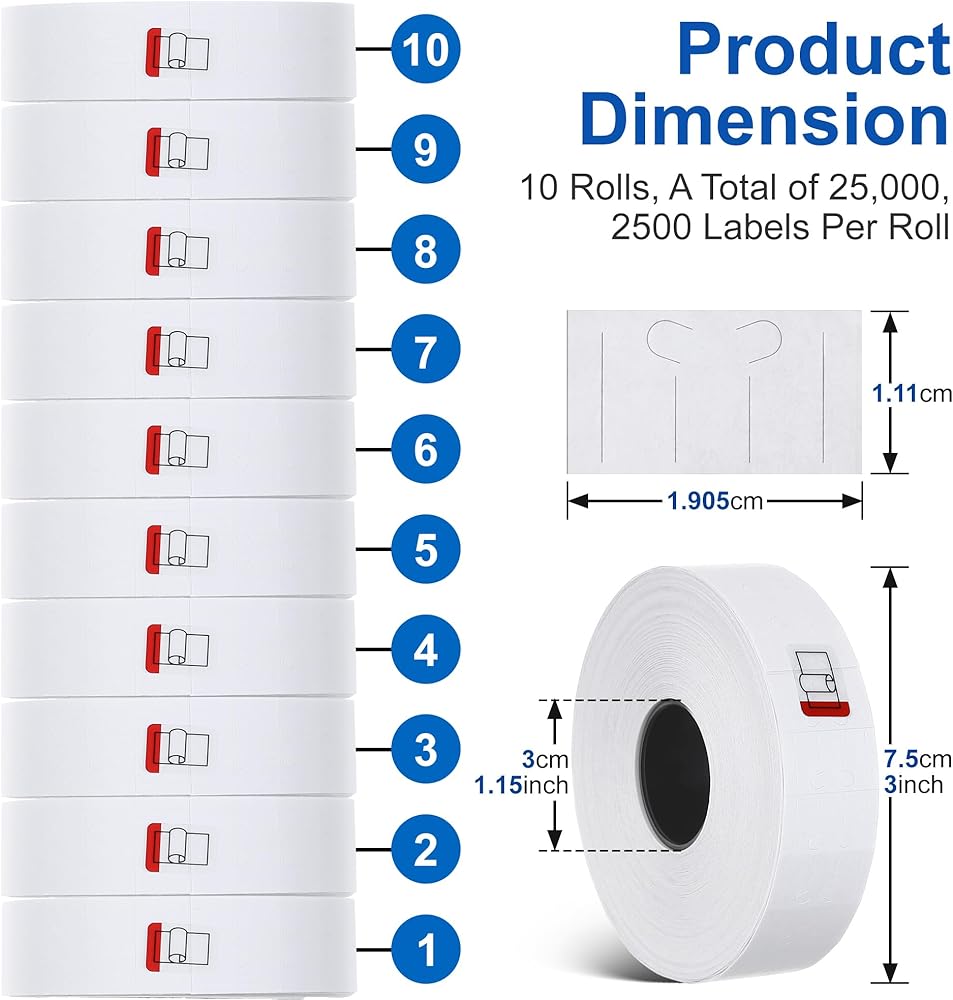 • What You Will Get: This price gun label set includes 10 rolls of price tags, totaling 25, 000 labels, each measuring 0.75" x 0.4375". With a large capacity, it meets your long-term pricing needs, reducing the hassle of frequent replacements, high capacity and cost-Effective