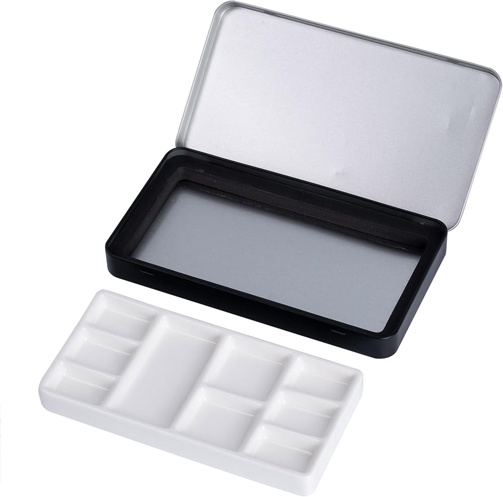Expertly Crafted: Our Watercolor Palette delivers an unparalleled experience with its professional-grade design. Comprised of high quality ceramic material housed in a robust metal box, this carefully measured 18x9x2cm palette fits seamlessly into a 20x11x2cm metal box. Custom-made padding ensures the palette stays secure and steady within the box, turning it into a convenient storage space for brushes and paints when the palette is in use.