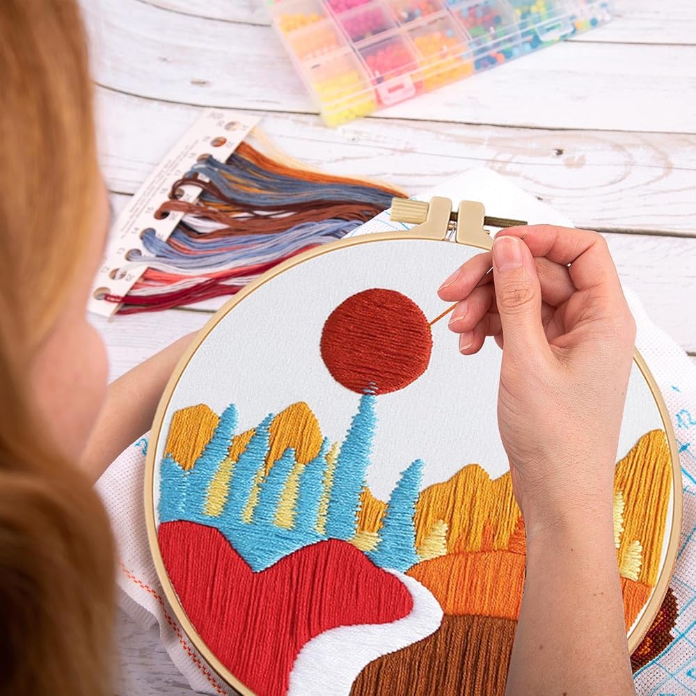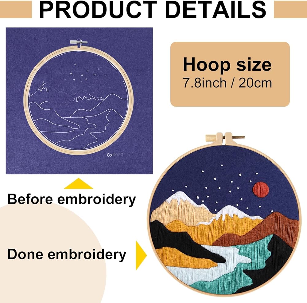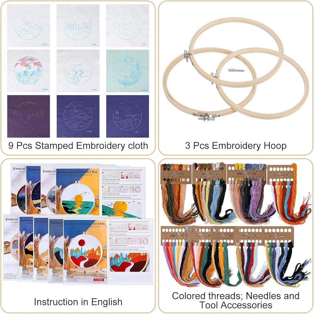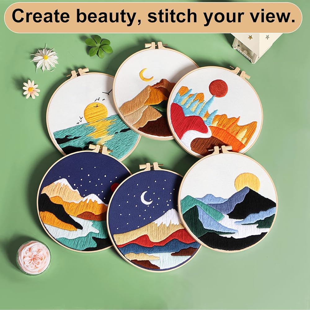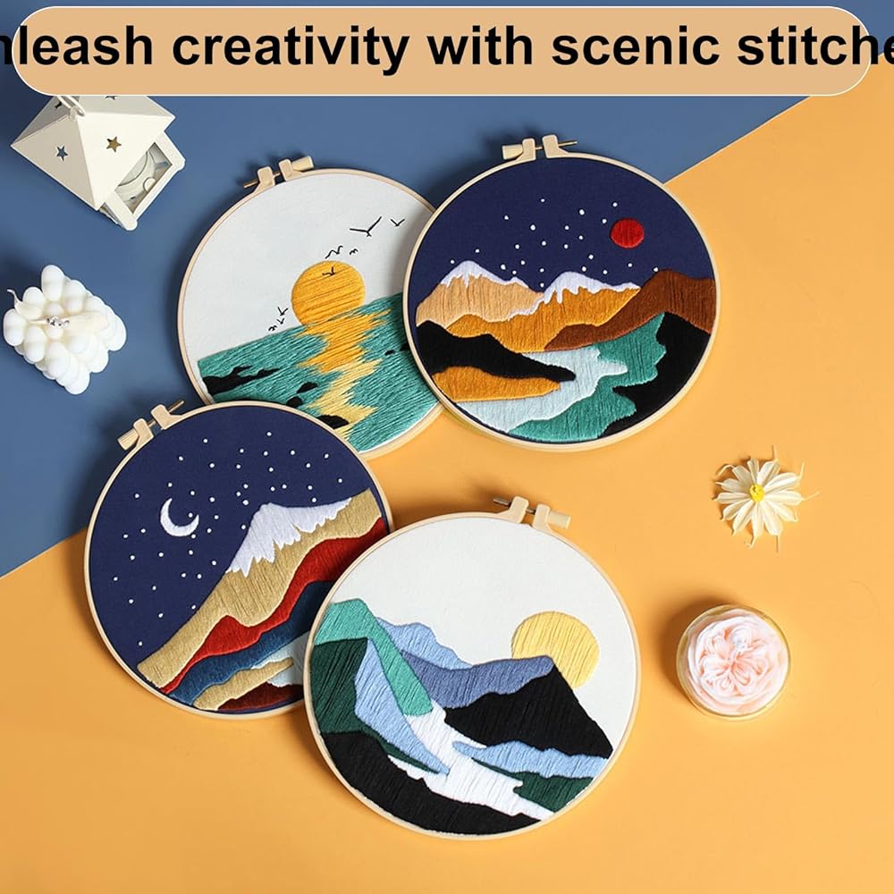 • Complete Package: you will get 9 packages of landscape themed embroidery gift sets, each package contains instructions, needles and threads, ensuring all the tools needed to complete each project