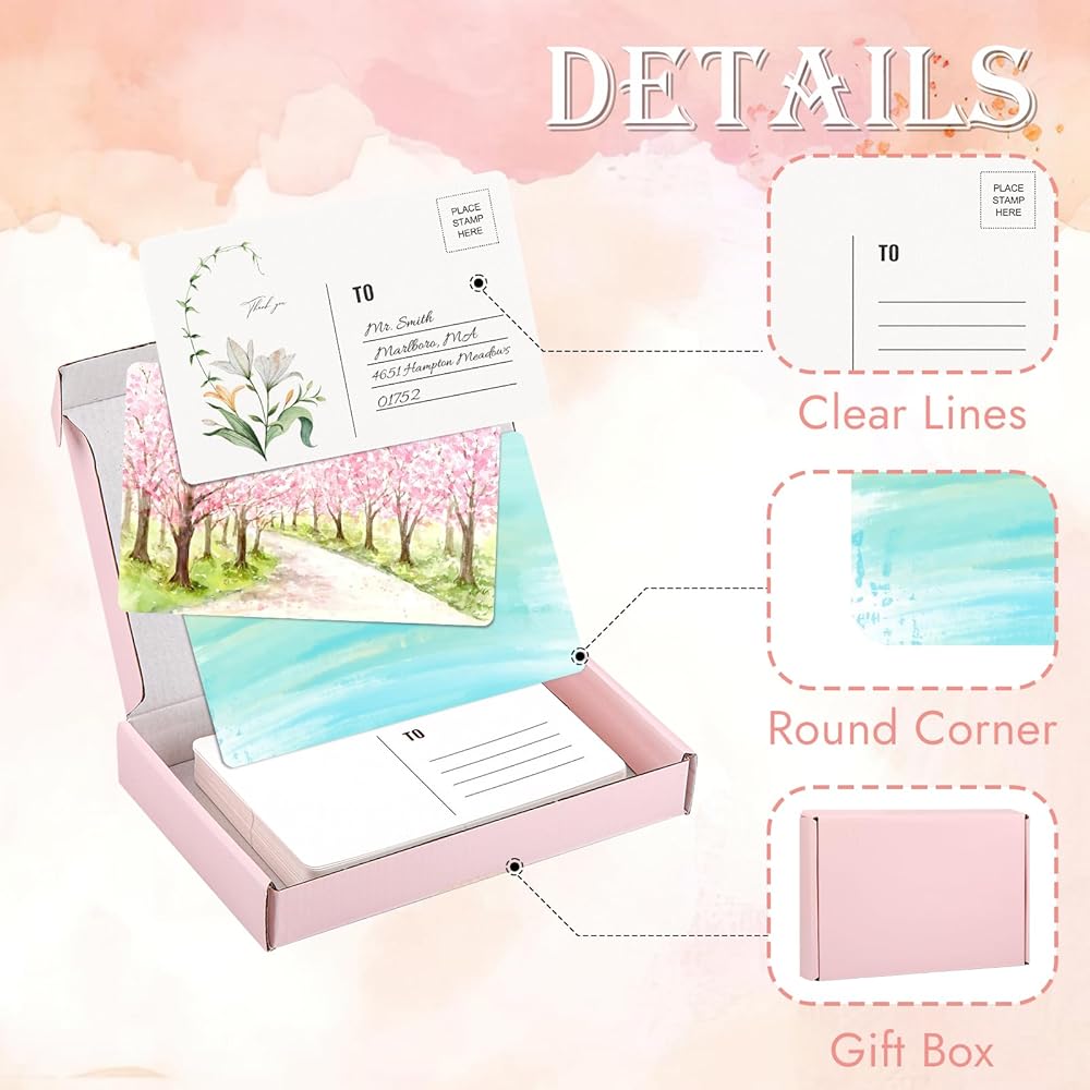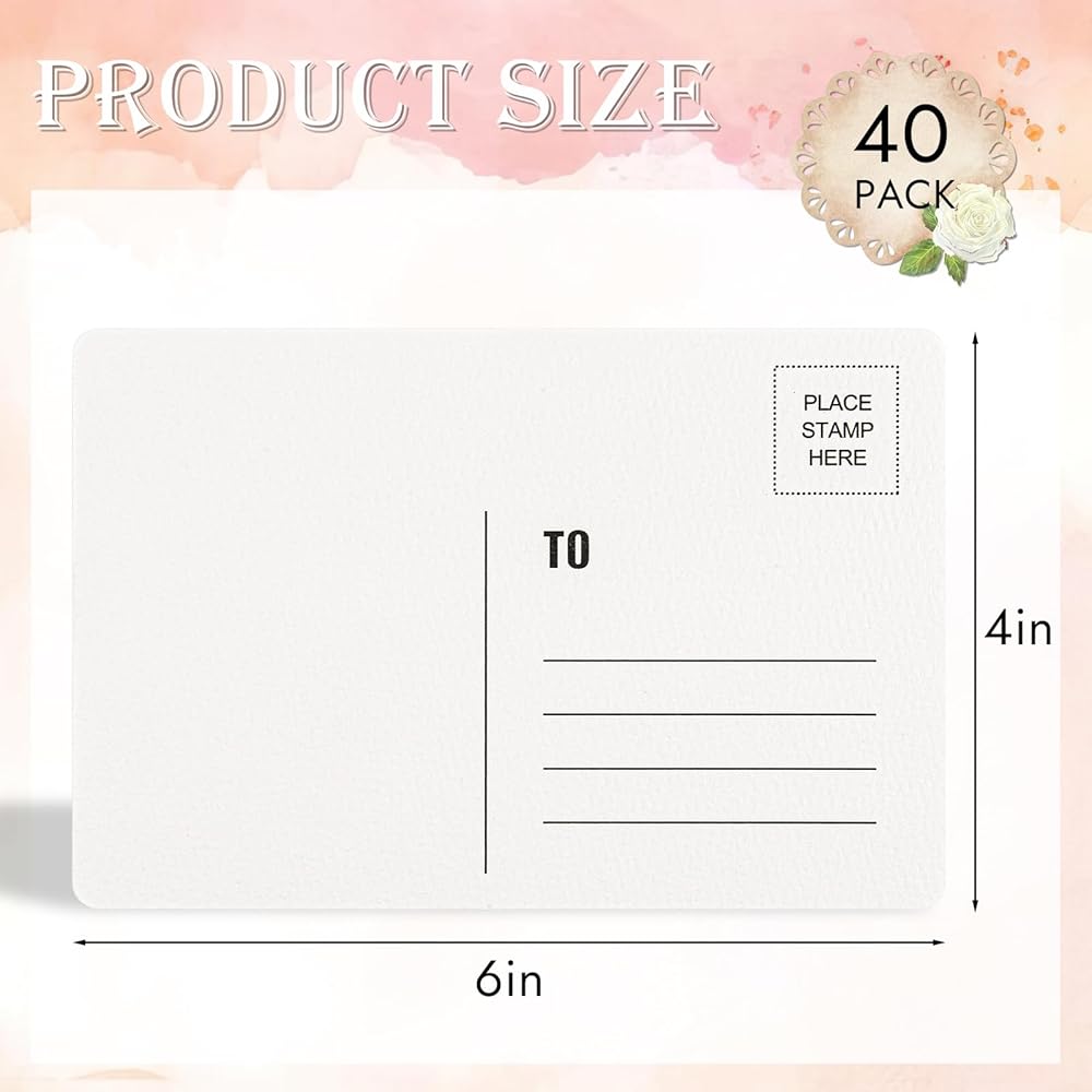 • تشمل الحزمة: ستتلقى 40 بطاقات بريدية مائية فارغة للبريد مع صندوق وردي لطيف ، وتلبية جميع لوائح بطاقة بريدية في الولايات المتحدة. مجرد عنوان ، ختم ، وإرساله بدون مظروف! تلبي هذه البطاقات البريدية بكميات كبيرة احتياجاتك اليومية وتلك الخاصة بعائلتك وأصدقائك
