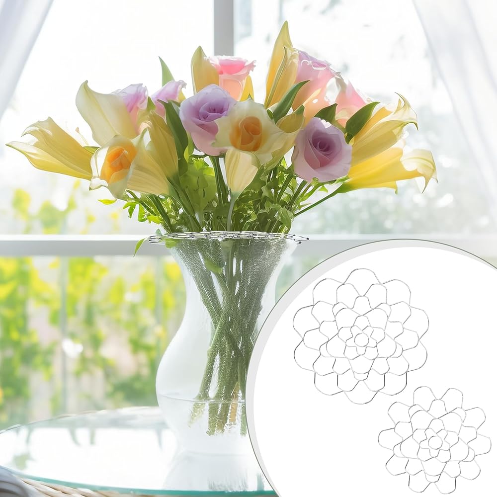 حامل ترتيب الزهور ، Benospace 2pcs الشبكة الأزهار من الفولاذ المقاوم للصدأ مع 6pcs مقطع سلك زهرة الفضة تطور لسيقان زهرية باقة التثبيت النباتية الإمدادات