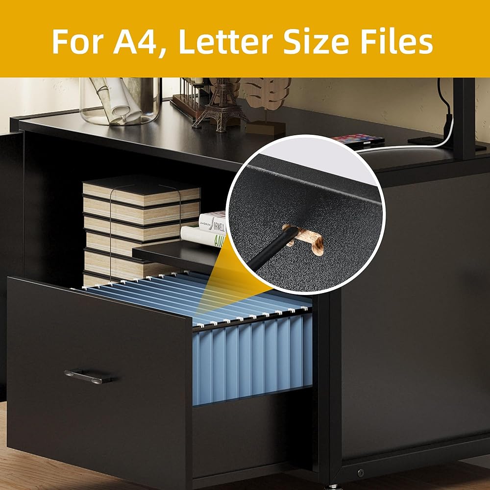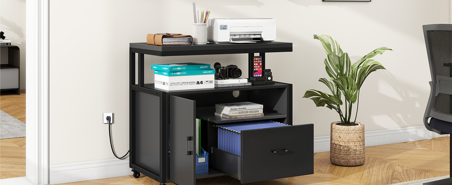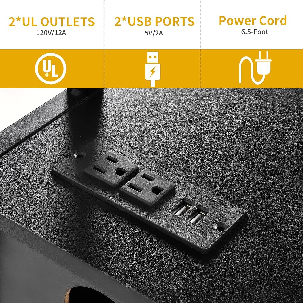 خزانة الملفات مع 2 منافذ التيار المتردد: تتضمن محطة الشحن 2 منافذ AC و 2 واجهة USB على السطح العلوي ، والتي يمكنها بسهولة شحن موقف الطابعة الخاص بك وحتى الكمبيوتر المحمول.