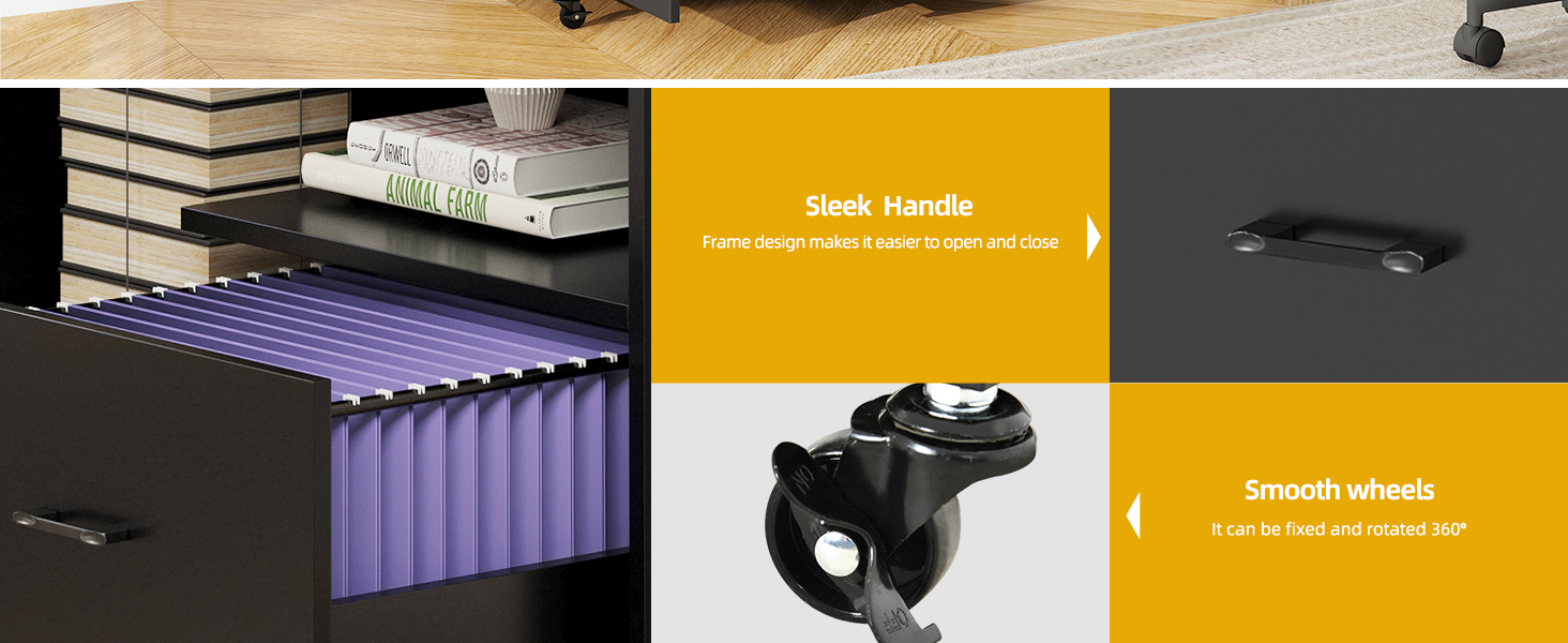 خمسة عجلات صناعية قوية: العجلات الخمسة 360 درجة في الأسفل تجعل من السهل التحرك في أي مكان. يمكن وضع هذه الخزانة بسهولة على الجانب للحصول على طابعة أو مكتب كمبيوتر أو أريكة مع حركة العجلات.