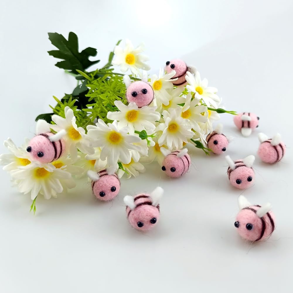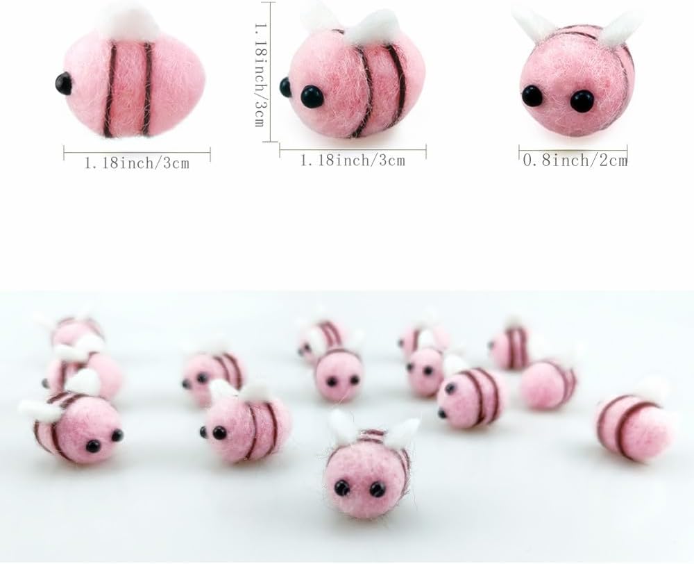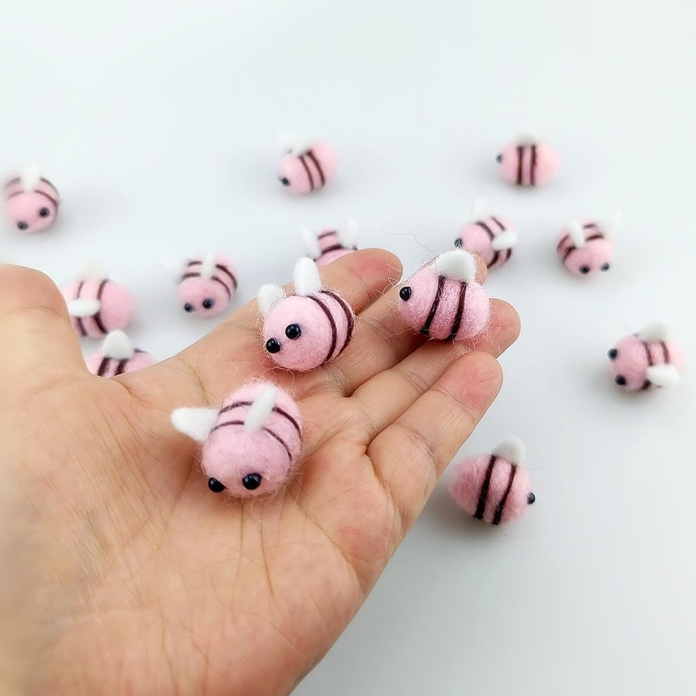 15 PCS Pink Wool Felt Bees Cute Felt for Crafts Felt Birthday Cake Bee Plush Decor for Baby Shower Gender Reveal Decoration Nursery Tent DIY Crafts by Saktopdeco
