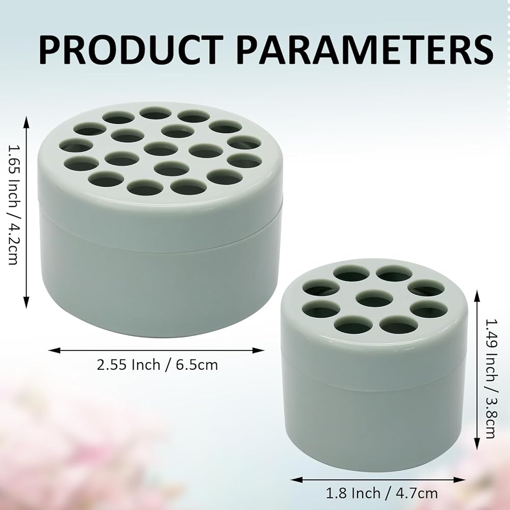- Color:Clear - Holes:Large has 19 holes, small has 9 holes - Size:Large diameter is 2.55 Inch / 6.5cm, height is 1.65 Inch / 4.2cm The small one is 1.8 Inch / 4.7cm in diameter and 1.49 Inch / 3.8cm in height. Package Contains: