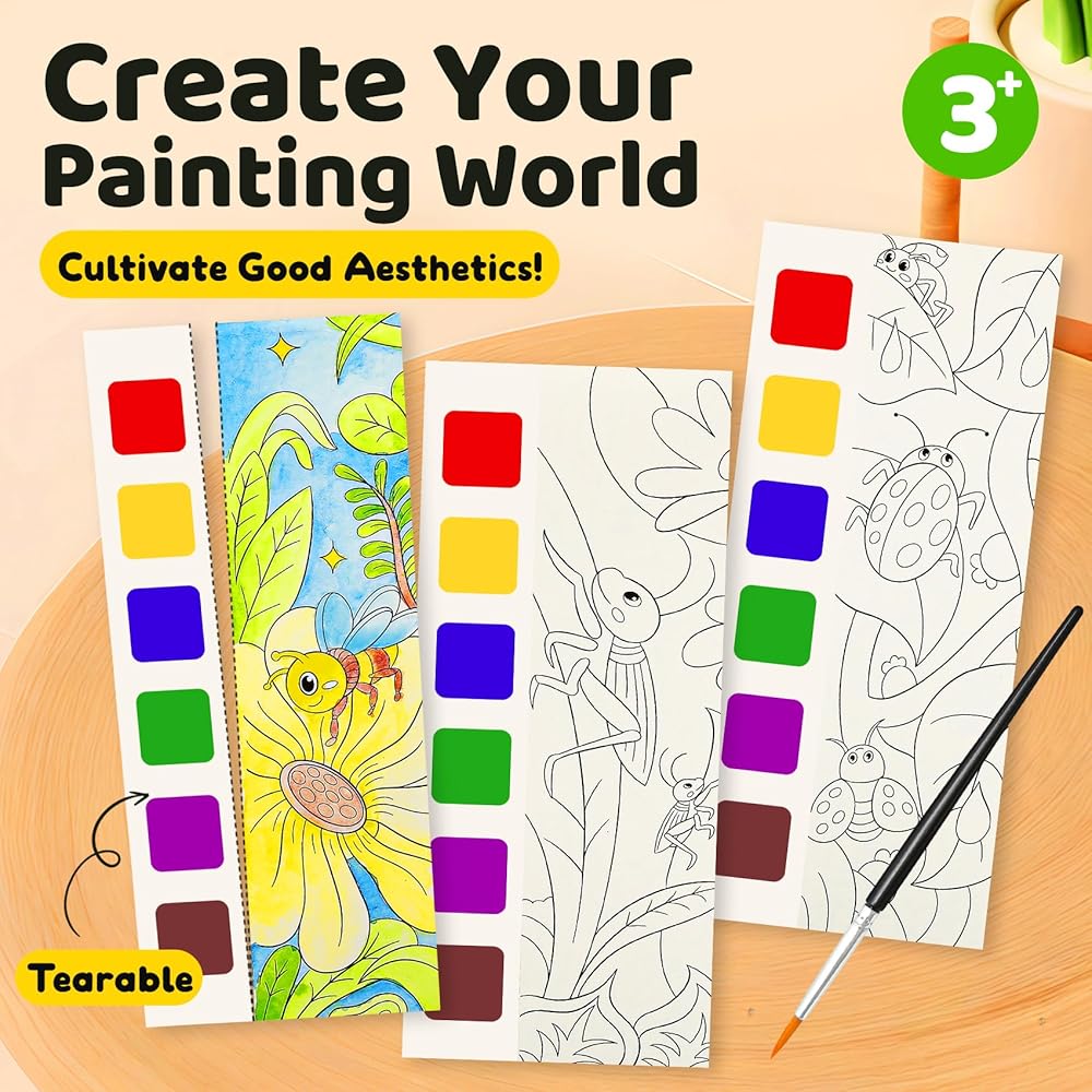 كتاب الطلاء المائي: يتميز كل صفحة بلوحة ألوان مائية مدمجة ذات ألوان نابضة بالحياة.