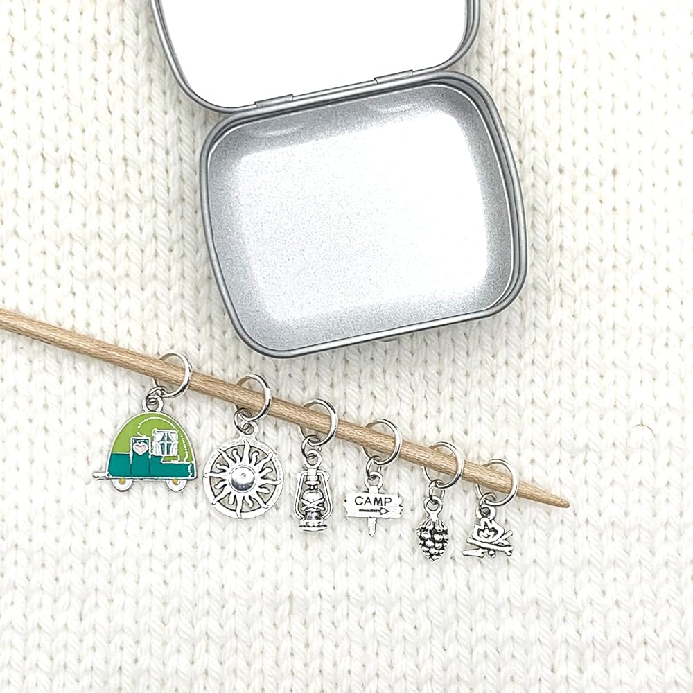 اذهب إلى علامات غرزة التخييم للحياكة مع حالة التخزين | مصنوعة يدويا من تصميمات دافئة جدا | علامة حلقة المينا المعدنية مجموعة هدية لأميها جدة الصديق الطبيعة عاشق فريدة من نوعها ملحقات عيد الميلاد ممتعة