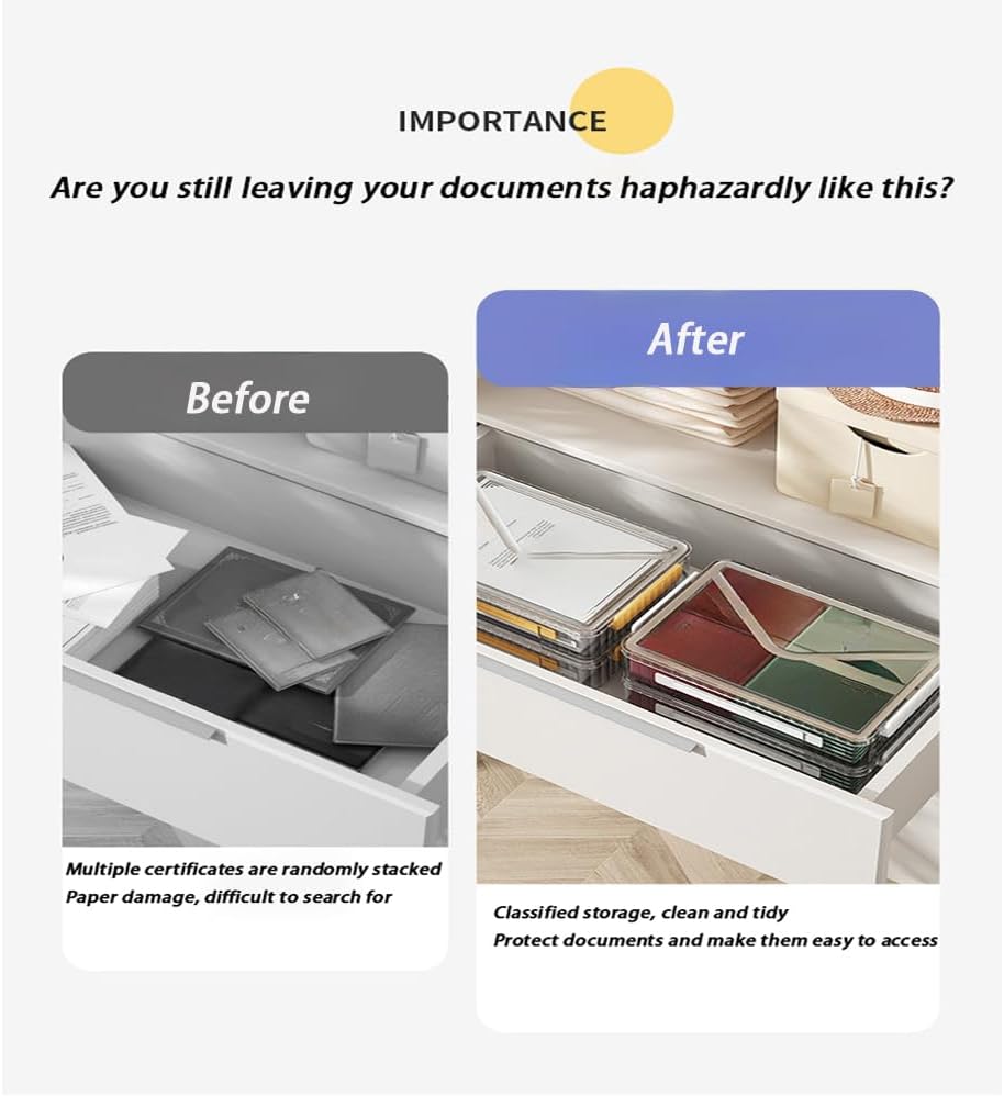 مادة عالية الجودة: منظم تخزين الورق هذه مع أغطية مصنوعة من مواد أليفة أكثر سماكة الجودة ، وبين الإبزيم مصنوع من مواد ABS ، ولا رائحة ، ومقاوم للغبار ومقاوم للماء ، وسهلة التنظيف ، والزنب تقدمت لفترة طويلة.