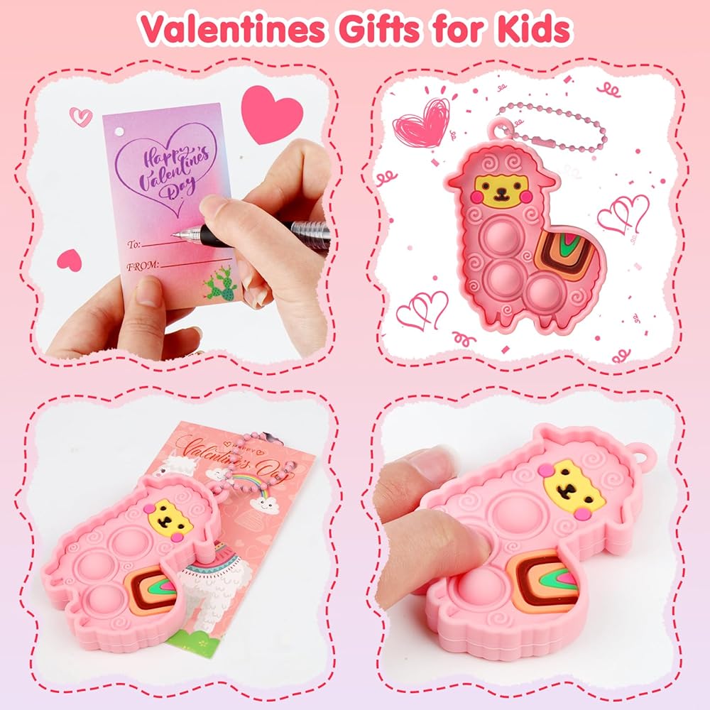 ❤ 【هدايا يوم عيد الحب للأطفال-24 PCS】 تم تصميم ألعاب Llama Pop Teedget بألوان لطيفة وحيوية ، مما يجعلها مثالية للهدايا النهارية لعيد الحب. تتكون ألعاب Pop Pop Valentines هذه من مواد سيليكون عالية الجودة آمنة للأطفال. المادة ناعمة وتشعر بالراحة. من السهل التنظيف ، المتينة استخدام عدة مرات.