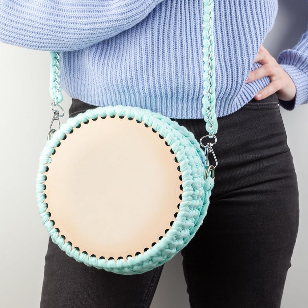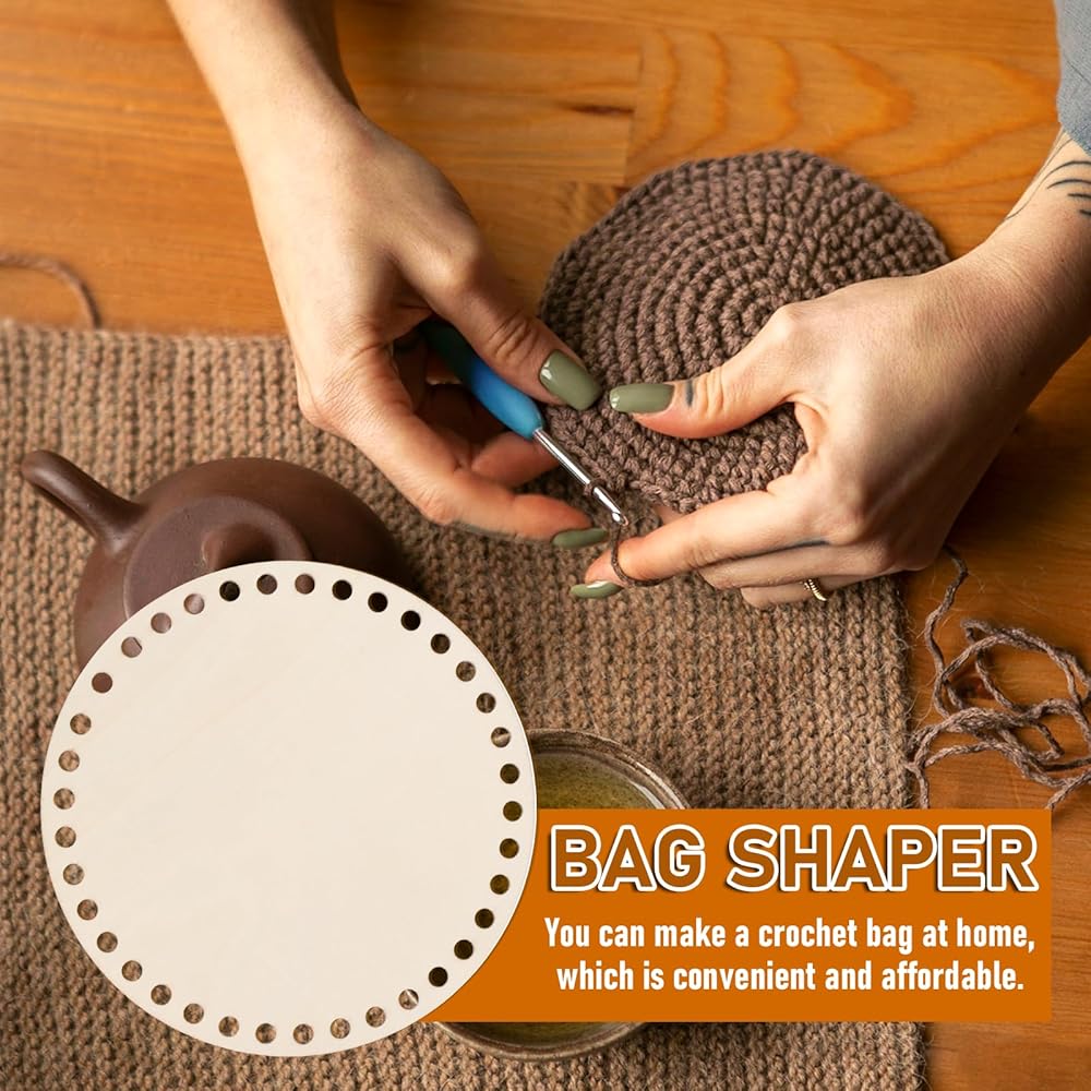 Easy to use: This wooden base is conveniently designed and easy to sew onto your crochet projects. The wooden crochet bag bottom can be used with T-shirt yarn, knitting wool, wicker and ordinary braiding rope. The classic round shape and large holes make it easy to crochet, suitable for amateurs and beginners.