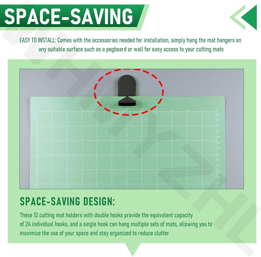 SPACE-SAVING DESIGN: These 12 cutting mat holders with double hooks provide the equivalent capacity of 24 individual hooks, and a single hook can hang multiple sets of mats, allowing you to maximize the use of your space and stay organized to reduce clutter