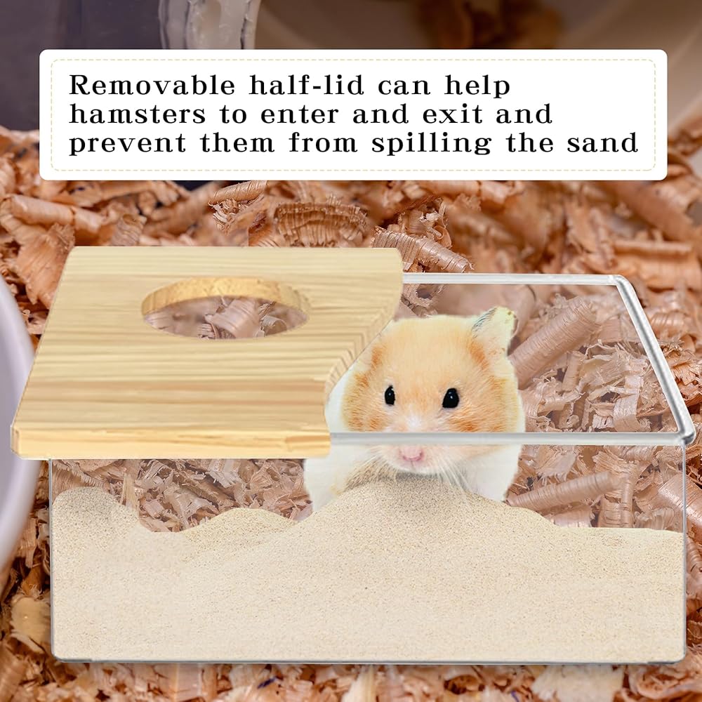 2.The half-lid solid wood allows you to observe the fun scene of your little pet bathing and digging in the sand inside.