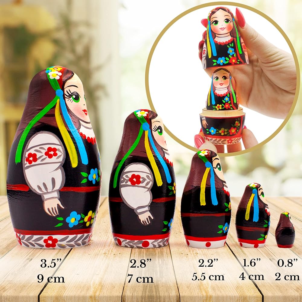 مجموعة دمى التعشيش الأوكرانية AEVVV من 5 أجهزة كمبيوتر - دمى تعشش مصغرة في الأزياء التقليدية الأوكرانية - ألعاب دمية التعشيش - دمى Micro Matryoshka Dolls