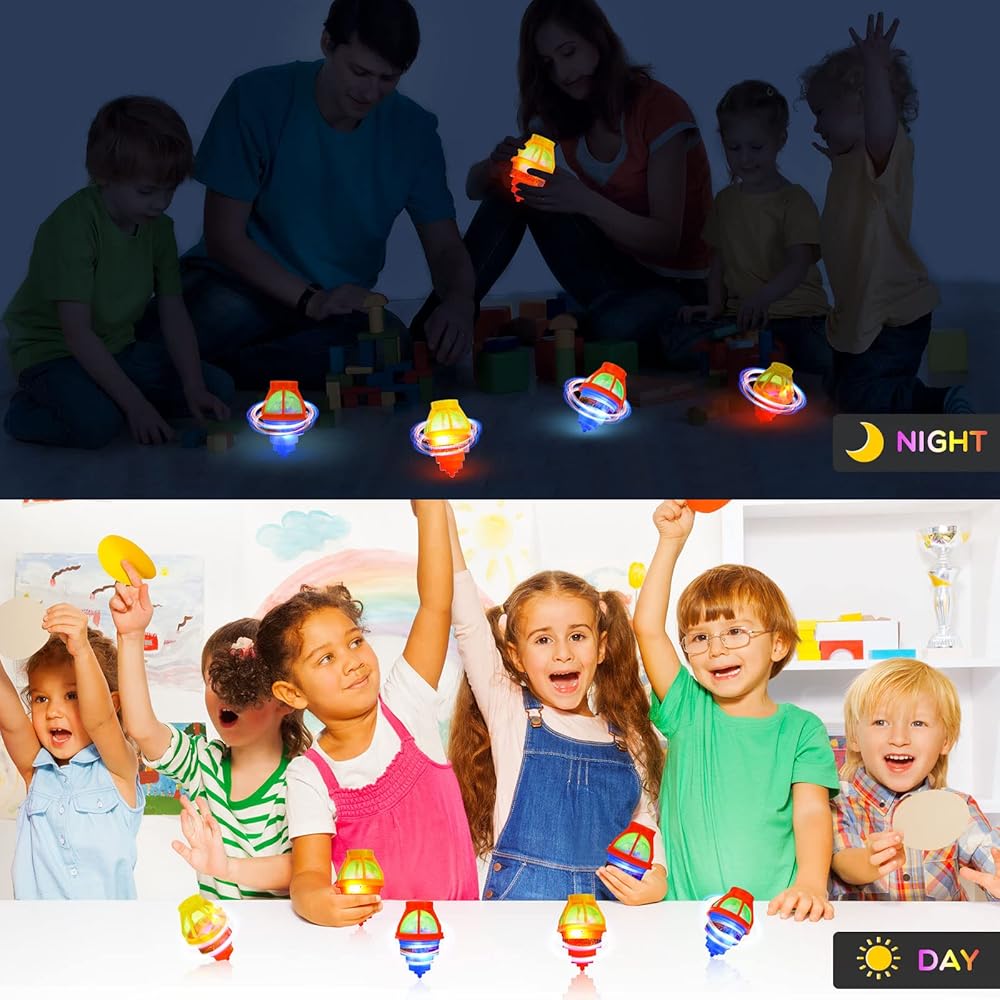 • المواد الآمنة: هذه قمم الدوار الوامضة مصنوعة من البلاستيك عالي الجودة وآمنة ومتين بما يكفي لتحمل الدوران العنيف ؛ ليس لديهم أجزاء صغيرة لا داعي للقلق بشأن أن يتم ابتلاعها عن طريق الصدفة ، في حين أن السطح الأملس لن يؤذي يديك عند الدوران