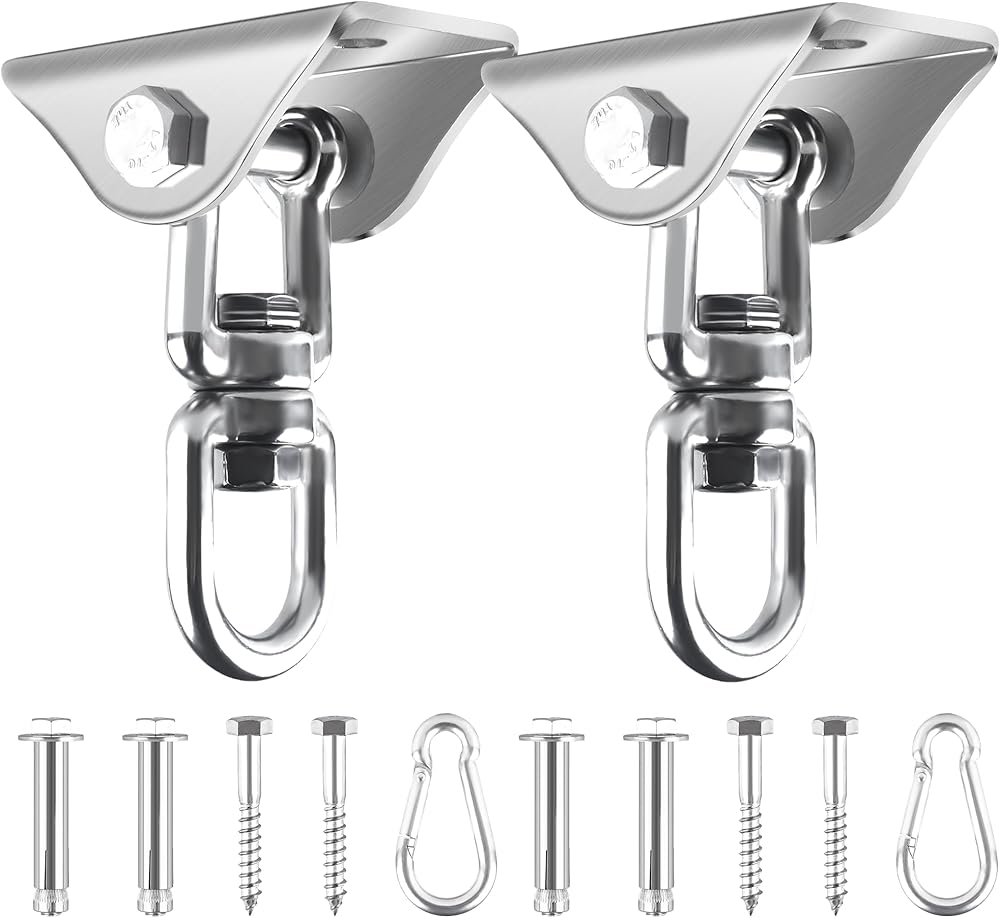 • material مواد عالية الجودة】 مجموعة معلقة من أرجوحة مصنوعة من الفولاذ المقاوم للصدأ عالي الجودة ، والتي تتميز بقوة ، مقاومة للتآكل ودائم. يمكن أن تحتفظ خطافات الأرجوحة بما يصل إلى 1200 رطل ، وتضمن المادة السميكة متانتها وسلامتها ، ويمكنك تعليق كرسي التأرجح بأمان وبسهولة. إنه يسقط فجأة وبشكل عن طريق الخطأ.