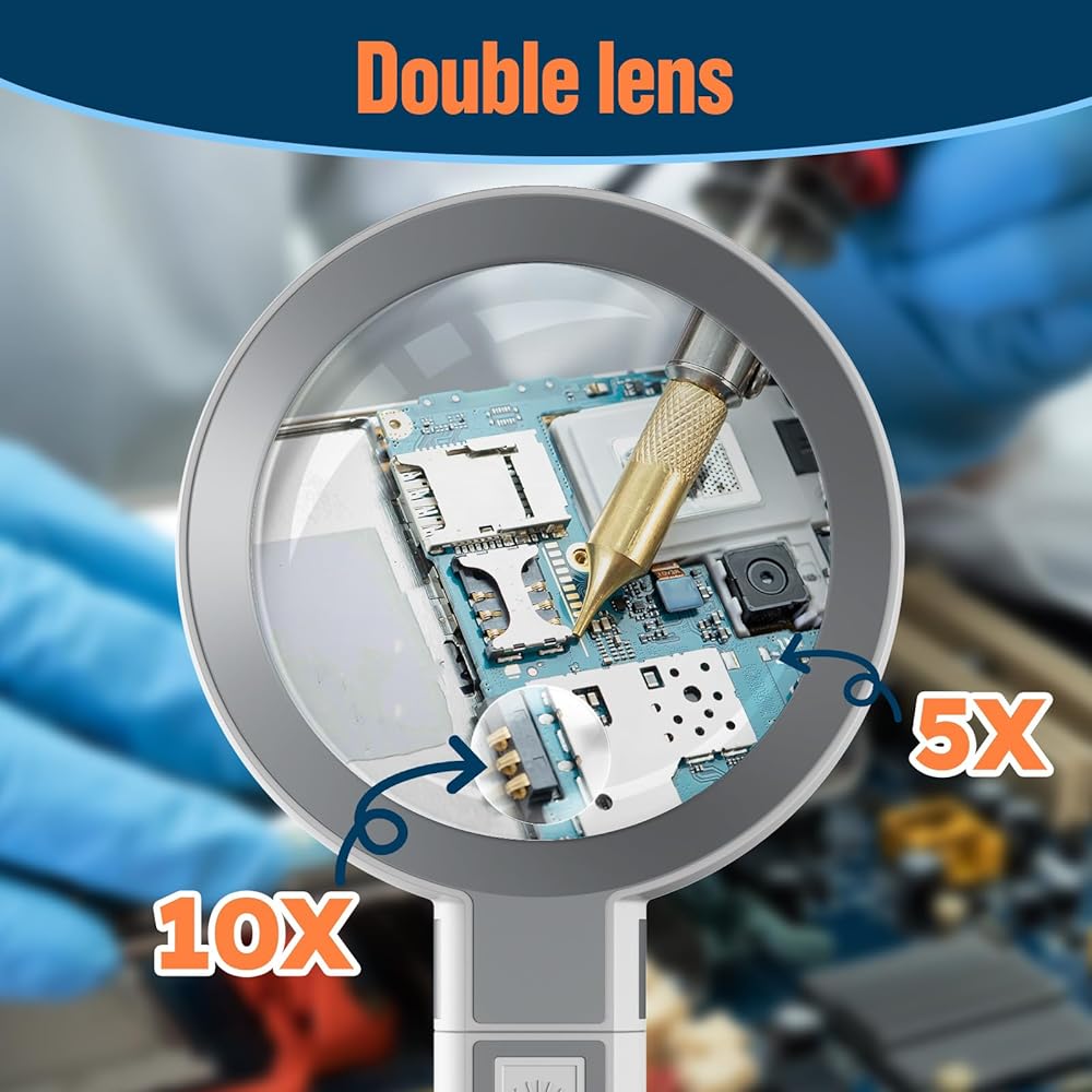 【5x 10x التكبير】- تصميم العدسات ذات الطبقة المزدوجة عالية الدقة ، عدسة كبيرة 5x ، عدسة صغيرة 10x ، للصيانة الوثيقة ، النسيج وغيرها من الأعمال لتوفير مجال أكثر وضوحًا من الرؤية