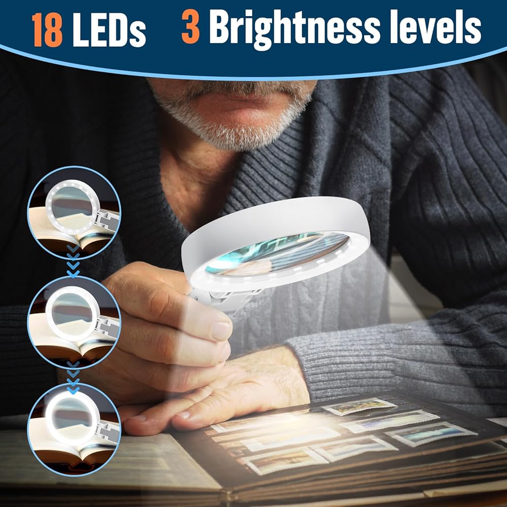 【الضوء الكافي】- أكواب مكبرة مع الضوء للعمل الوثيق , بناء 18 LED في 3 مستويات السطوع توفر إضاءة إضافية في بيئات الإضاءة المنخفضة