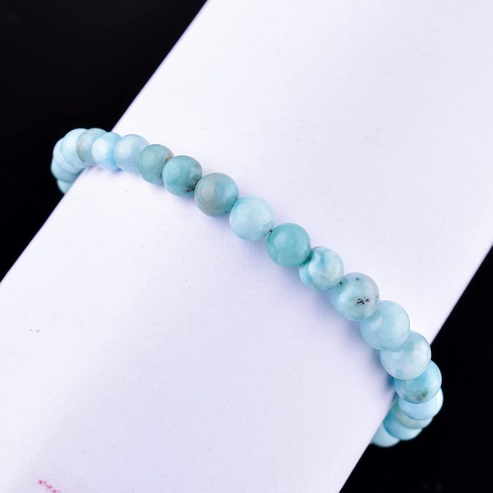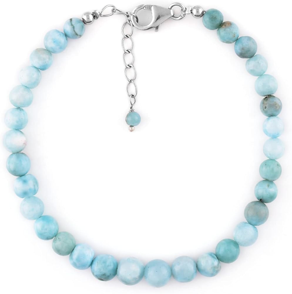 Infinitygemsart Natural Larimar Beads Bracelet Bracelet Womensy ، بلورات الأحجار الكريمة الشائكة ، أحجار شفاء الطاقة ، 925 الفضة الإسترليني 8 بوصة ، حجر البحر ، البكتوليت ، أحجار الدلفين