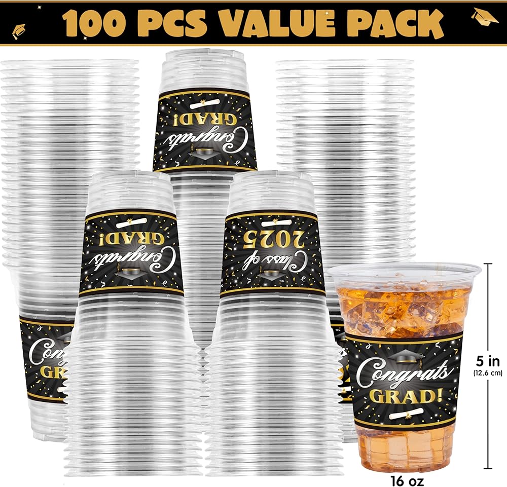 • حزمة القيمة الفائقة: تتضمن مجموعة أكواب الدرجات لدينا 100 قطعة من أكواب التخرج التي يمكن التخلص منها 16 أوقية في تصميمات متعددة مختلفة - من أجل جعل موسم التخرج الخاص بك انفجارًا!
