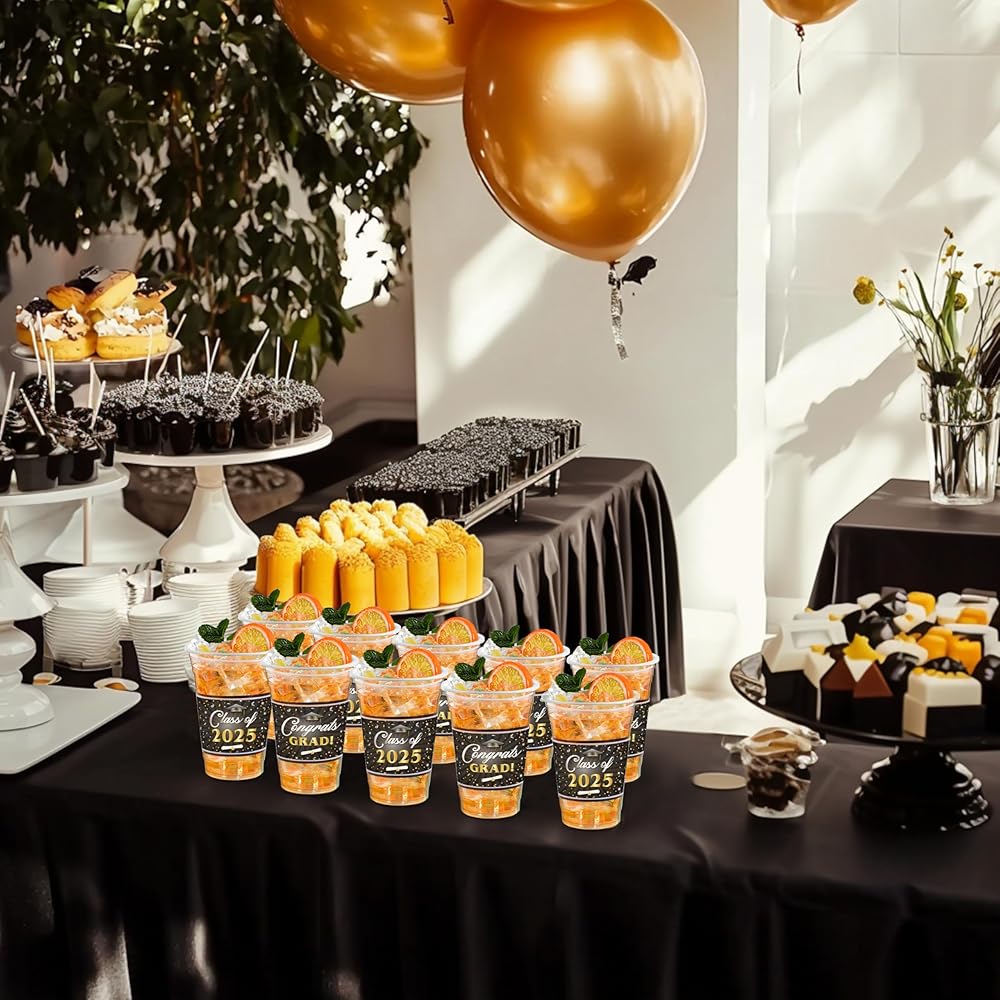 • التصميم الاحتفالي: يتميز بالتخرج الكلاسيكي ويأتي في تصميمين مختلفين مع شعارات مثل "تهانينا غراد!" و "فئة 2025" ، مجموعة الكأس التي يمكن التخلص منها هي ديكور رائع لمستلزمات حفل التخرج 2025!