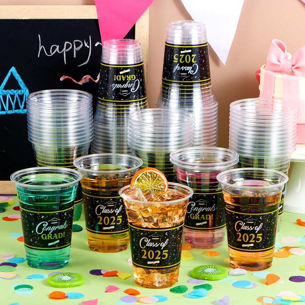 Joyin 100 PCS 16oz Cups Cups Party Party Plastic Coups ، Class of 2025 Terguters Tablemo Table Cup ، Cup Pet for High School College School Party Forms Favors Suppors