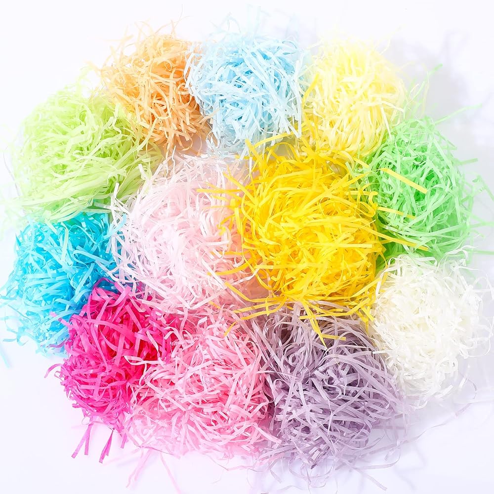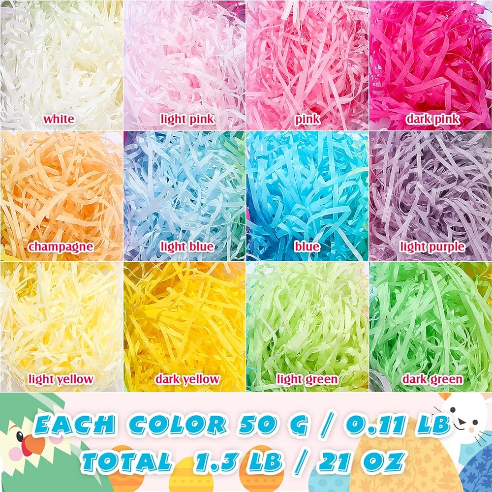 • Easy to Use: these shredded grass paper can be directly put into the baskets, gift boxes for gift packing or Easter Day eggs stuffing, and you can pick the proper quantity or various colors to fit your items and it is convenient to use