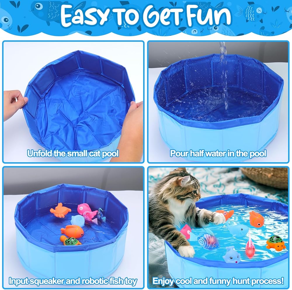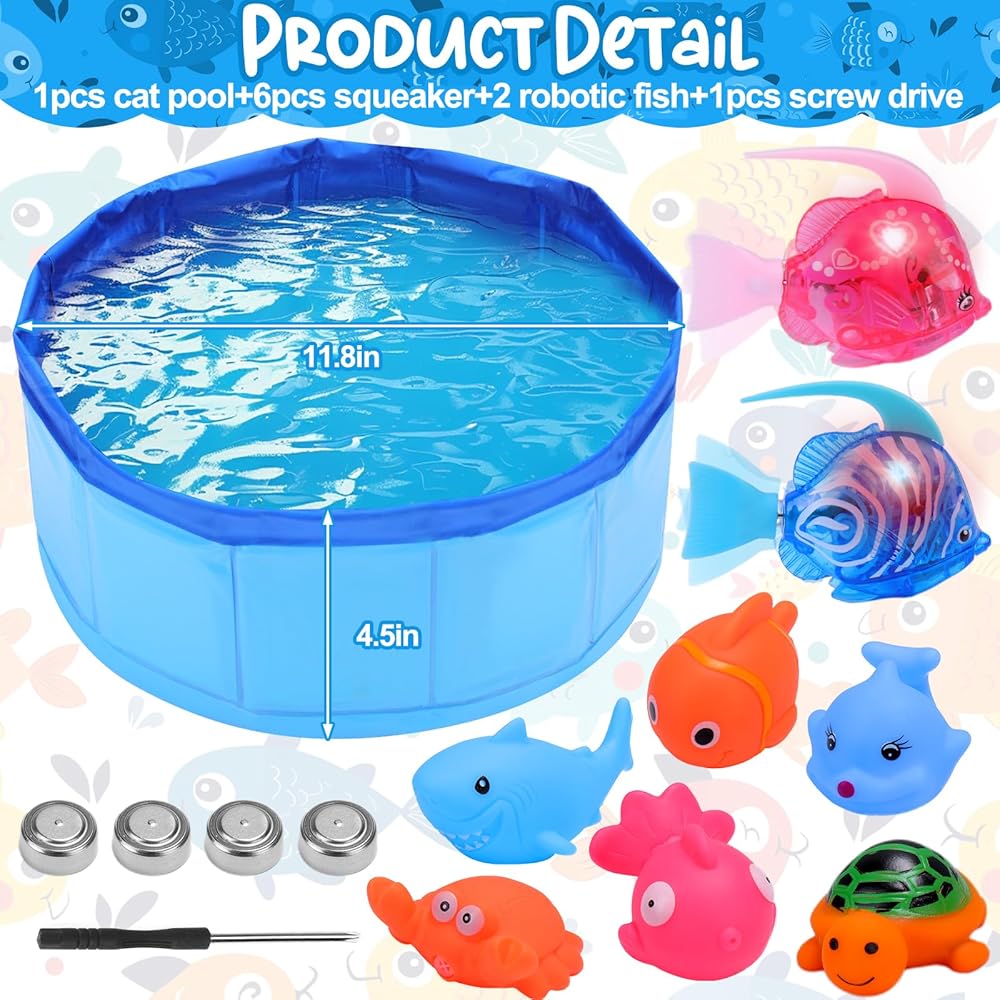 حمام سباحة القطط المطر Mity مع الأسماك ، ألعاب للقطط الداخلية بالملل ، لعبة Cat Funny Function التفاعلية مع تحفيز ألعاب الأسماك الروبوتية للعب الماء القط ، حمام سباحة للقطط لتخصيب اللعب الذاتي
