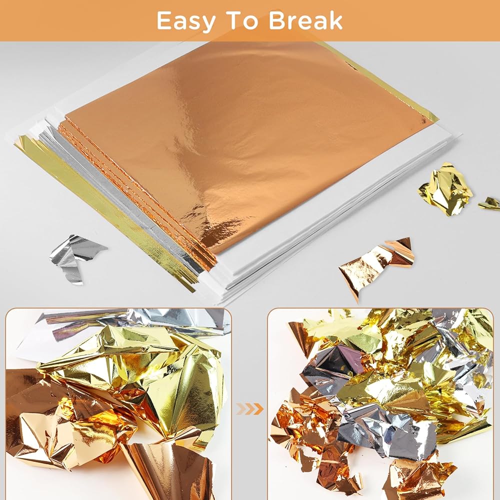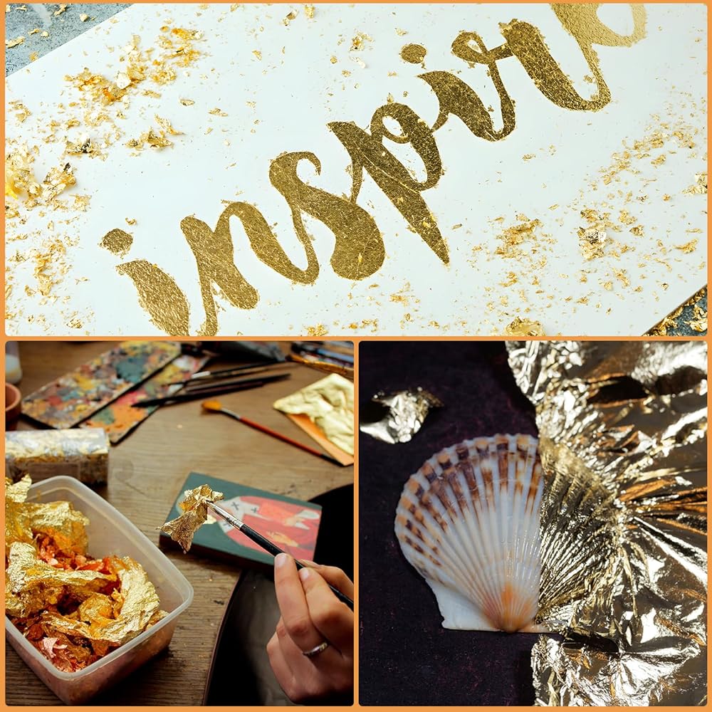 • Gold Leaf Kit:Transform your art projects with our gold sheets for crafts, featuring imitation gold leaf in 3 vibrant colors: Gold, silver, and rose gold. Perfect for DIY crafts, these foil sheets add a luxurious touch to any project