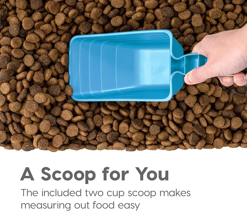• EASY MOBILITY: The storage bin comes with attachable wheels, allowing for easy movement. You can place it on a shelf or roll it from the storage area to your pet's bowl for added convenience.
