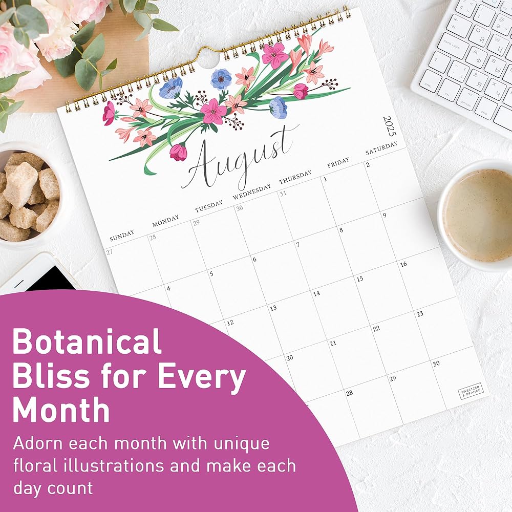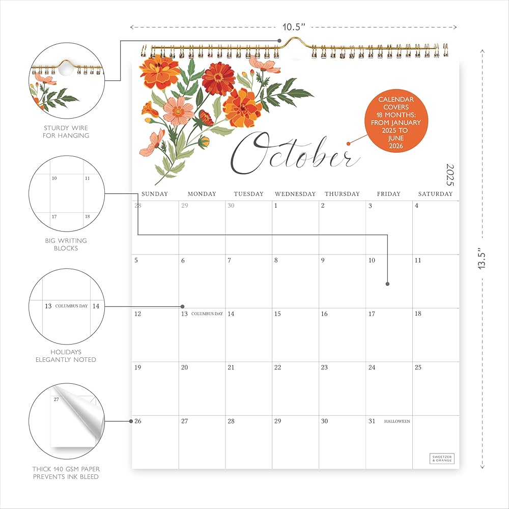 S & O Twelve Flower Flower 18 شهرًا تقويم الجدار 2025-2026-الجدول الشهري للدموع شهرية يناير 2025-يونيو 2026،13.5 "× 10.5 منظم معلق أكاديمي ، مواعيد المسار ، للمنزل