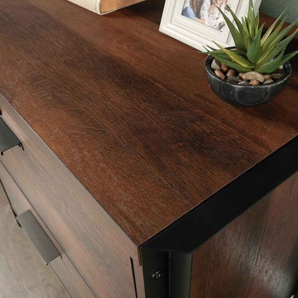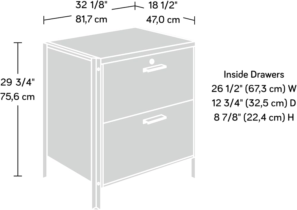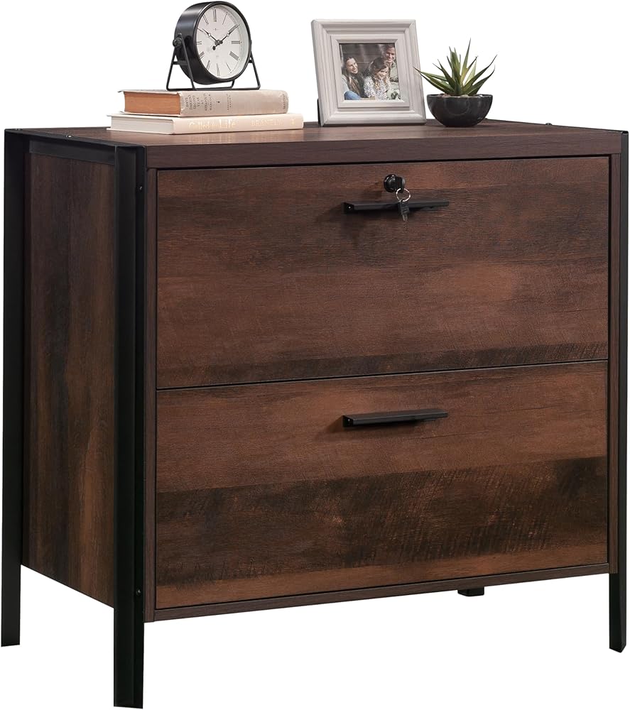 This lateral file from the Briarbrook collection gives storage and style where you need it most. Whether at home or at work, this lateral file cabinet will hold your important letter or legal-size hanging files with smooth, full extension slides. An interlocking safety mechanism allows only one drawer of this lateral file to open at a time, ensuring your safety and ease of use. For added protection of your files, this 2-drawer filing cabinet features a locking upper drawer to keep your files secure while you are away from the office or at work. This file cabinet is finished on all sides for versatile placement—it will look polished from all angles, anywhere in your home or office. A powder coated metal frame enhances the durability and sleek feel of this lateral file cabinet. Finished in a Barrel Oak® finish, this file storage furniture is a bold, but needed, upgrade to your workspace.