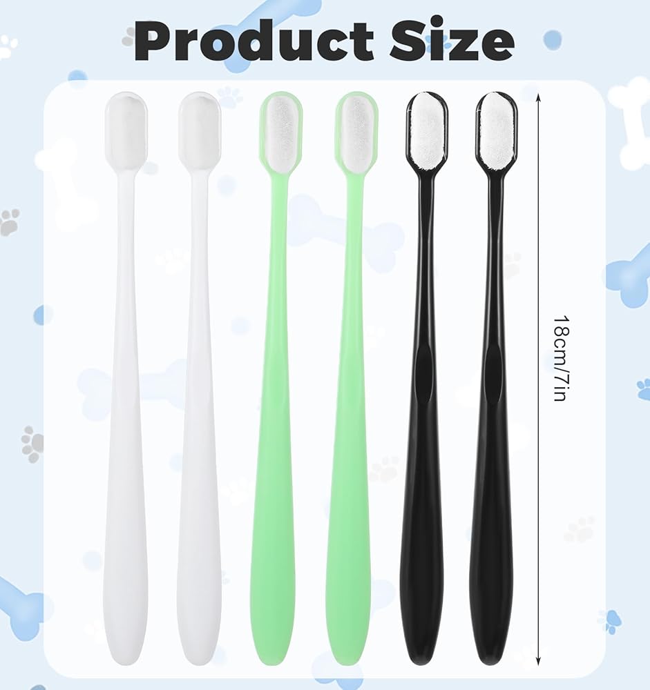 Variety of Colors - You'll receive a set of six doggy toothbrushes in black, white, and green; this assortment lets you easily differentiate brushes while ensuring extended use through regular rotation